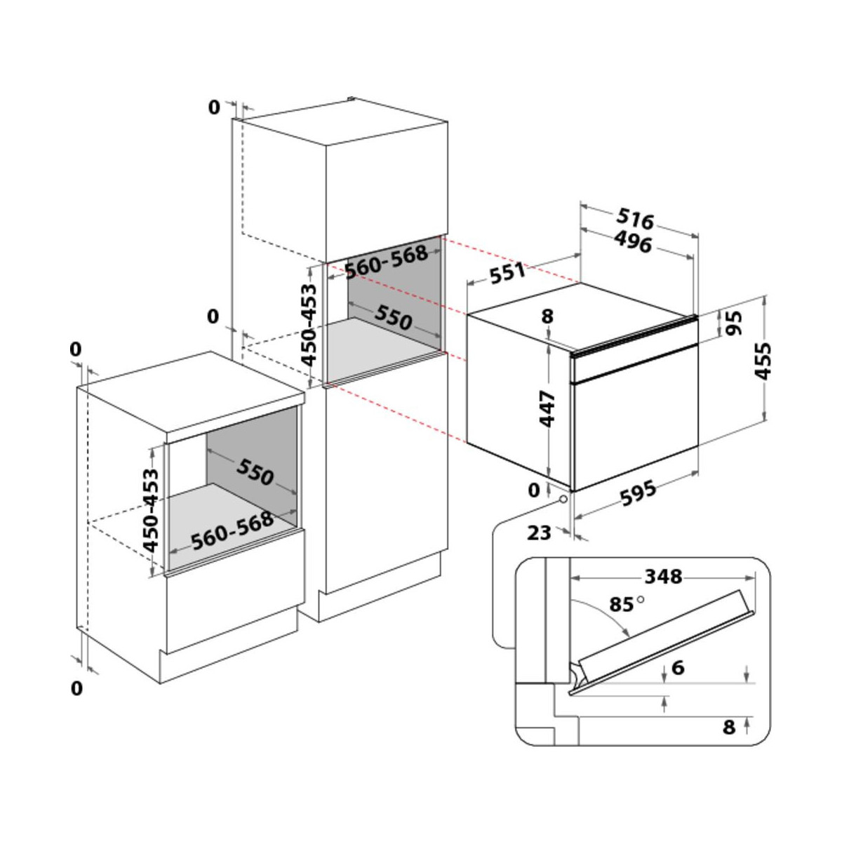 | Larghezza dello scomparto di installazione (min) | 55,6 cm |