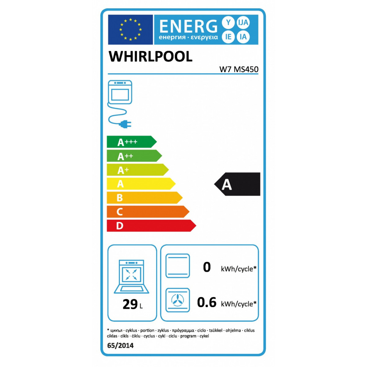 Whirlpool W7 MS450 - Forno a Vapore Compatto, 29 Litri, A