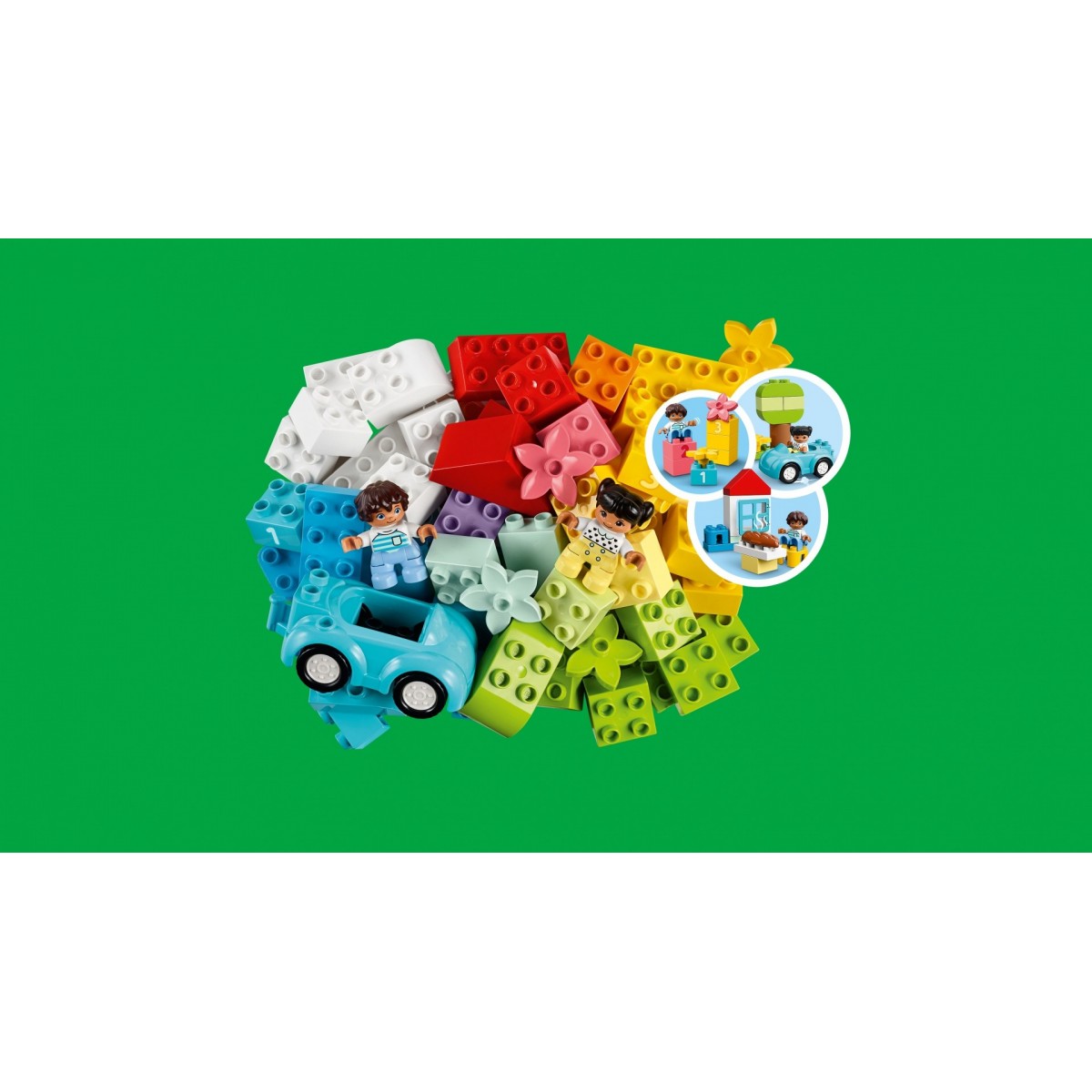 Quando apri questo variopinto assortimento di mattoncini LEGO® DUPLO®, aprirai anche un mondo di gioco creativo e di benefici per lo sviluppo. Questo versatile playset è ricco di idee e ispirazione per i più piccoli. Ci sono un’auto con ruote funzionanti, un tetto, una finestra, fiori e pane... tutti da combinare con una varietà di mattoncini e pezzi per un gioco di fantasia senza fine. Puoi persino introdurre i numeri con i mattoncini 1, 2 e 3.