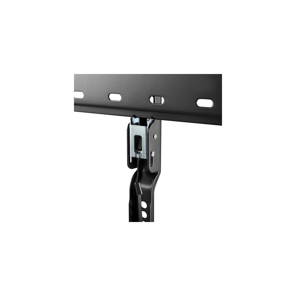 Questo supporto a parete a basso profilo è perfetto per le nuove TV OLED ultra sottili da 43" a 80" e deve essere montato nella parte inferiore della TV. Semplice installazione direttamente a parete grazie alla livella a bolla integrata. Il supporto può essere bloccato e sbloccato con una fascia a rilascio rapido per una installazione e rimozione semplici, inoltre sono inclusi cuscinetti in silicone per evitare danni alla parete.