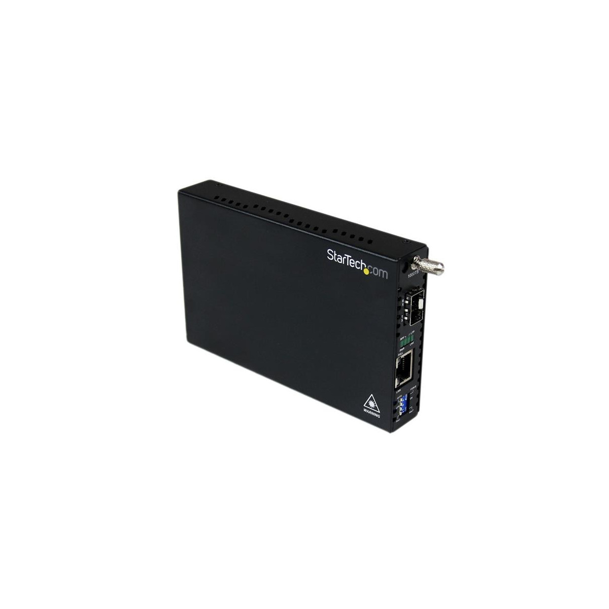 StarTech.com Convertitore multimediale in fibra Gigabit Ethernet con slot SFP aperto. Velocità massima di trasferimento dati: 1250 Mbit/s, interfaccia convertitore input: 1000Base-T, interfaccia convertitore output: 1000Base-LX,1000Base-SX. Connettore a fibra ottica: SFP, Tecnologia di connessione: Cablato. Tempo medio tra guasti (MTBF): 65000 h. Colore del prodotto: Nero, Materiale della scocca: Acciaio, Certificazione: FCC. Voltaggio di ingresso: 100 - 240 V, Corrente d'ingresso: 0.36 A, Voltaggio di uscita: 12 V