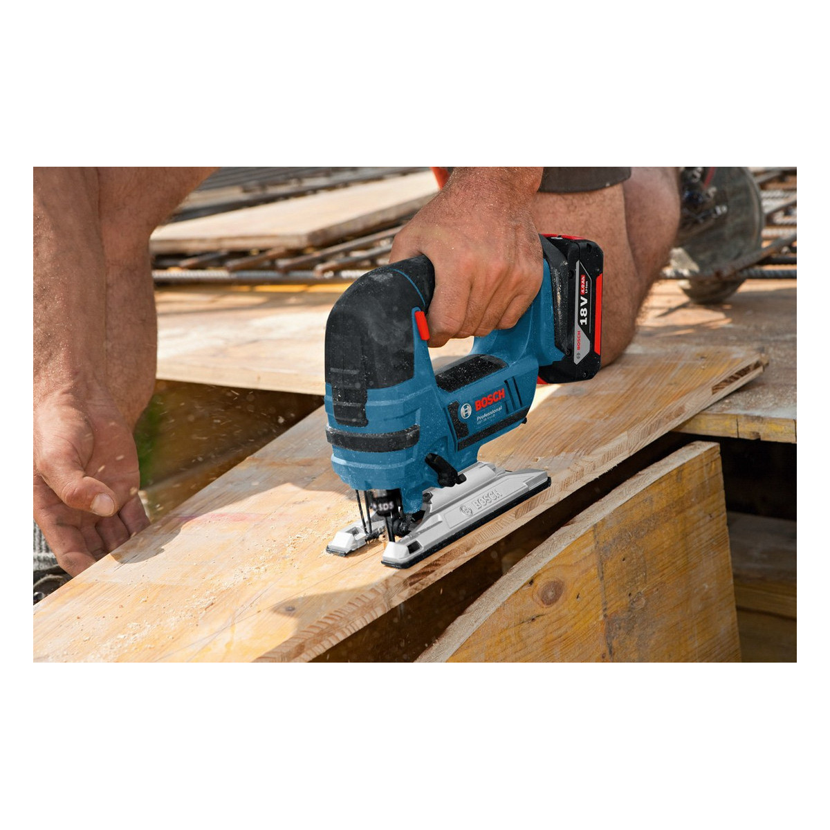 Bosch GST 18 V-Li B. Colore del prodotto: Nero, Blu, Bevel capacity (max): 45°. Capacità massima di taglio nel legno: 12 cm, profondità del taglio nell'alluminio: 2 cm, profondità del taglio nell'acciaio non legato: 8 mm. Alimentazione: Batteria, Tecnologia batteria: Ioni di Litio, Capacità della batteria: 4 Ah. Peso: 2,4 kg. peso del colpo: 2,3 cm, Numero di corse a vuoto: 2700 spm (fogli per minuto)