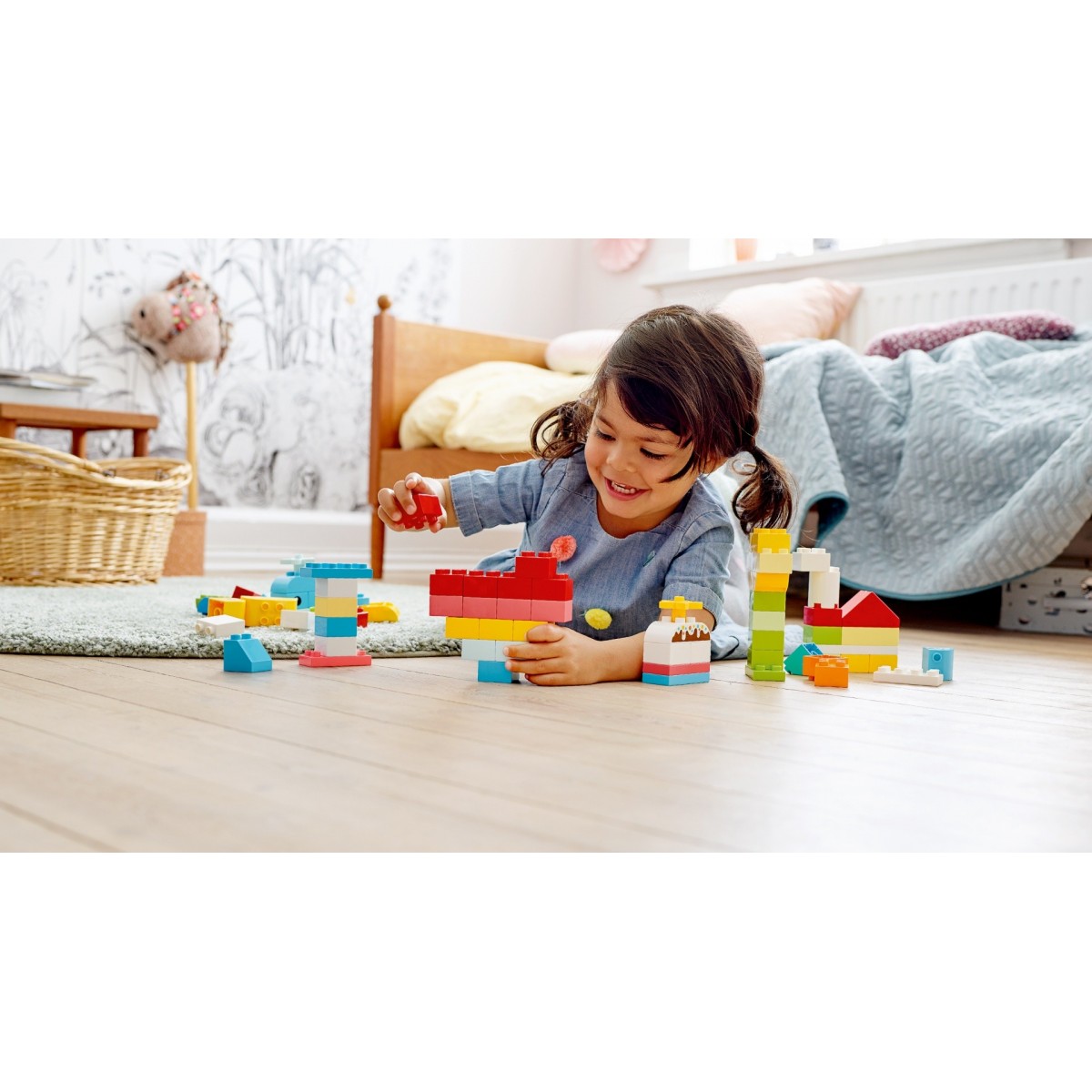I bambini piccoli adoreranno costruire, imparare e immaginare con questo colorato mix di mattoncini LEGO® DUPLO®! Costruisci... ci sono 15 modelli divertenti da assemblare - da un fiore a un elicottero. Impara... ogni modello offre tanti argomenti di cui parlare. Immagina... con infinite storie e gioco di ruolo, tutto è possibile! E mentre costruiscono, imparano e immaginano, i genitori possono condividere le preziose pietre miliari dello sviluppo del loro piccolo costruttore.