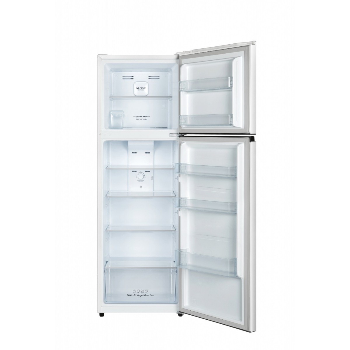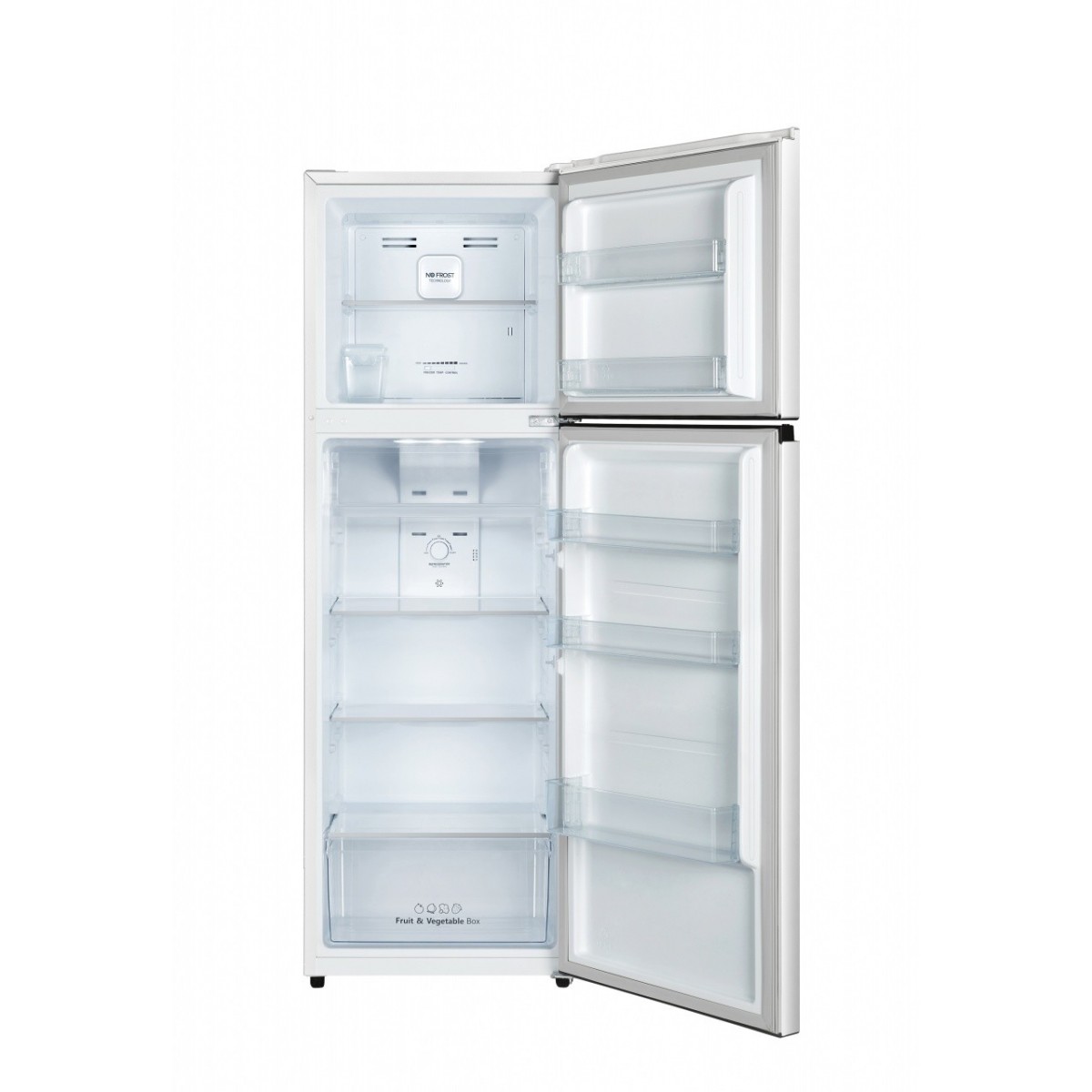 Hisense RT327N4AWF. Capacità netta totale: 246 L. Cerniera porta: Destra. Classe climatica: N-ST, Emissione acustica: 42 dB. Capacità netta frigorifero: 196 L, No Frost (frigorifero), Luce interna, Numero di ripiani frigorifero: 4, Numero di cassetti per verdura: 1. Capacità netta congelatore: 196 L, No Frost (congelatore). Classe efficienza energetica: F, Consumo energetico annuo: 241 kWh. Colore del prodotto: Bianco