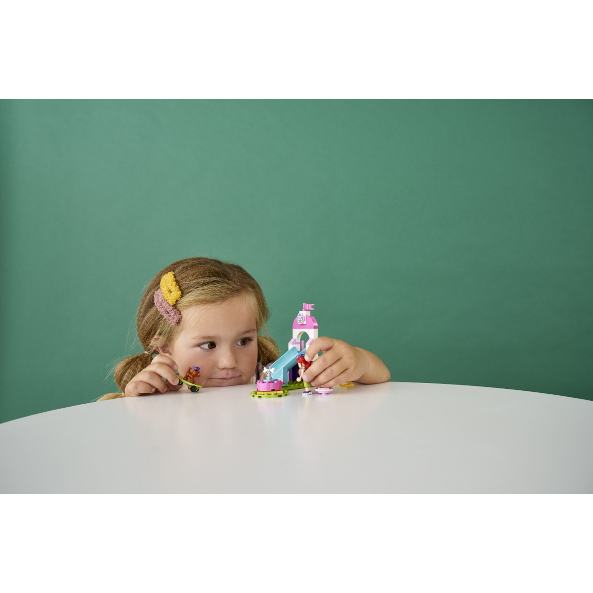Unisciti a Mia al Parco giochi dei cuccioli di Heartlake City per tanto divertimento e giochi con i suoi cuccioli, Cookie e Coco. Pettina i cani e metti loro i bellissimi fiocchi: è una giornata di sole, quindi non dimenticare gli occhiali da sole di Mia! Porta Coco a fare un giro sulla giostra. Aiuta Cookie a scendere giù sullo scivolo con il suo skateboard! Quando sono stanchi, dai loro una bella ciotola d'acqua. E se sono stati bravi, ricompensali con un osso e un biscotto!