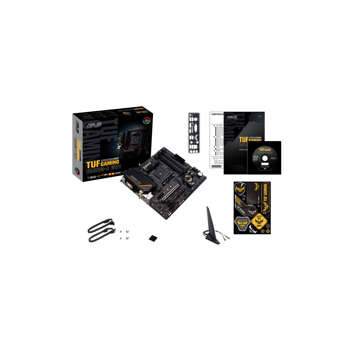 ASUS TUF GAMING B550M-E WIFI. Produttore processore: AMD, Presa per processore: Presa AM4, Processori compatibili: AMD Ryzen 3, AMD Ryzen 5, AMD Ryzen 7, 3rd Generation AMD Ryzen 9, AMD Ryzen 9 5th Gen. Tipi di memoria supportati: DDR4-SDRAM, RAM massima supportata: 128 GB, tipo di slot di memoria: DIMM. Interfacce dell'unità di archiviazione supportate: M.2,PCI Express 3.0,SATA III, Tipi di unità di archiviazione supportate: HDD & SSD. Risoluzione massima: 3840 x 2160 Pixel. Connettore USB: USB tipo A