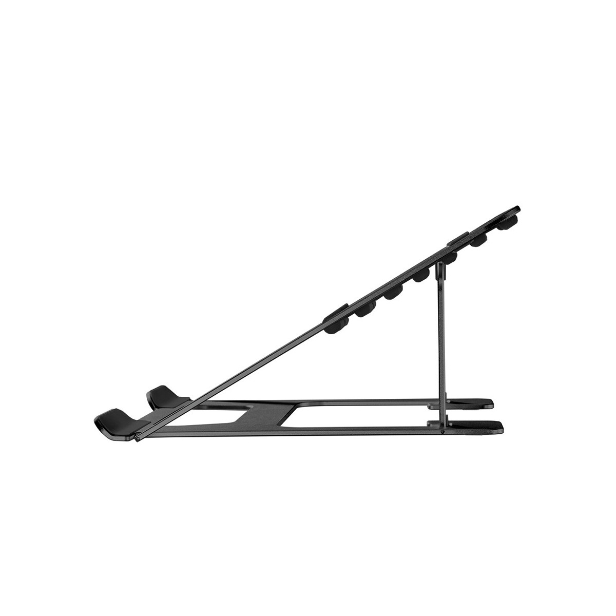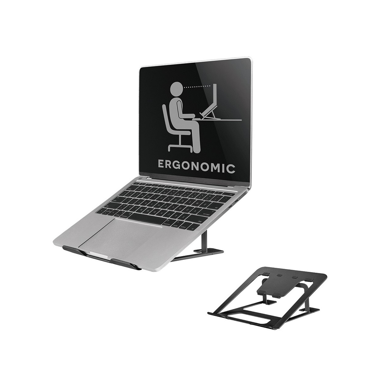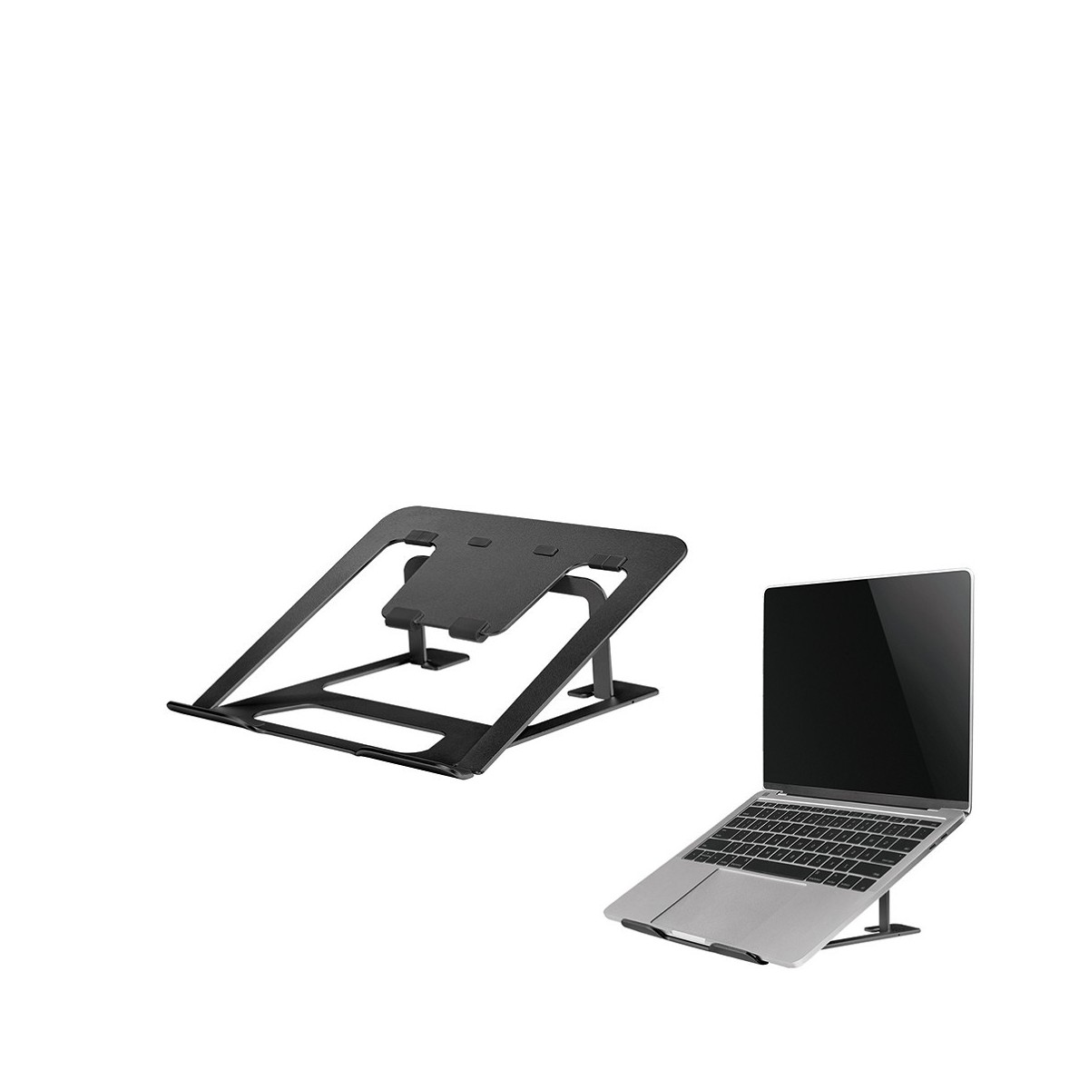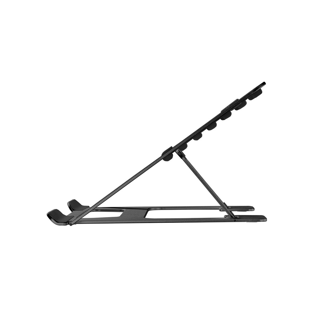 Il NewStar NSLS085BLACK è un supporto universale per laptop da 10" a 17", con una capacità di peso massima di 5 kg. Il supporto ha sei diverse posizioni di altezza e un design pieghevole ultra sottile.