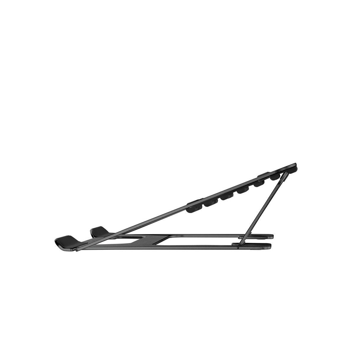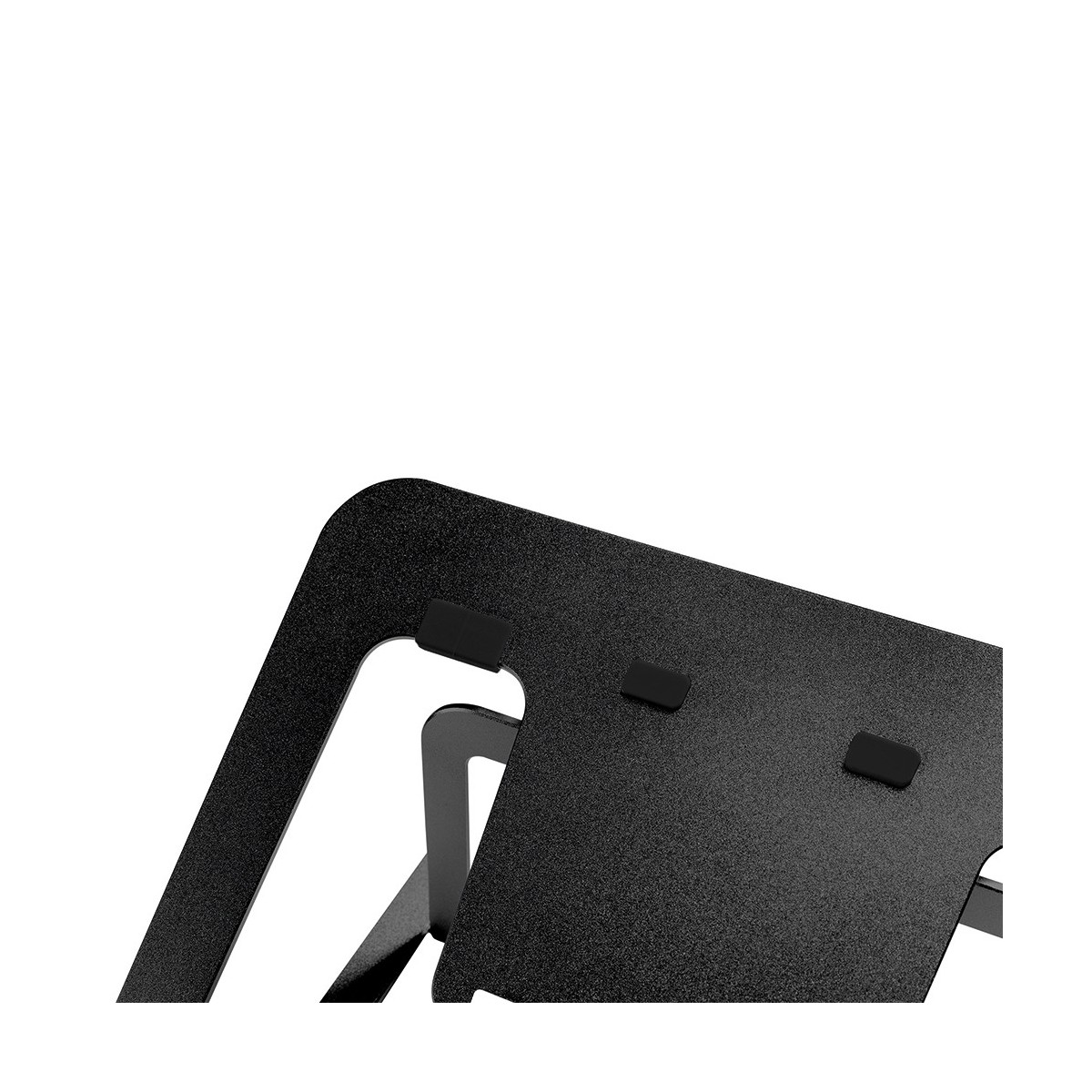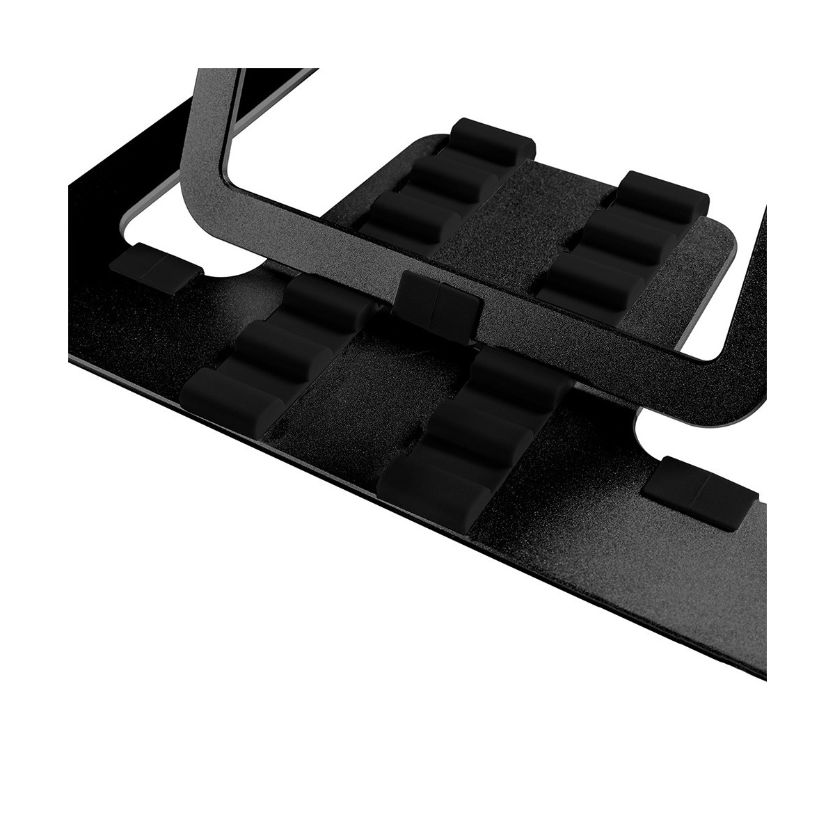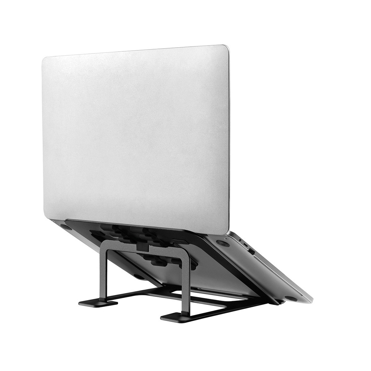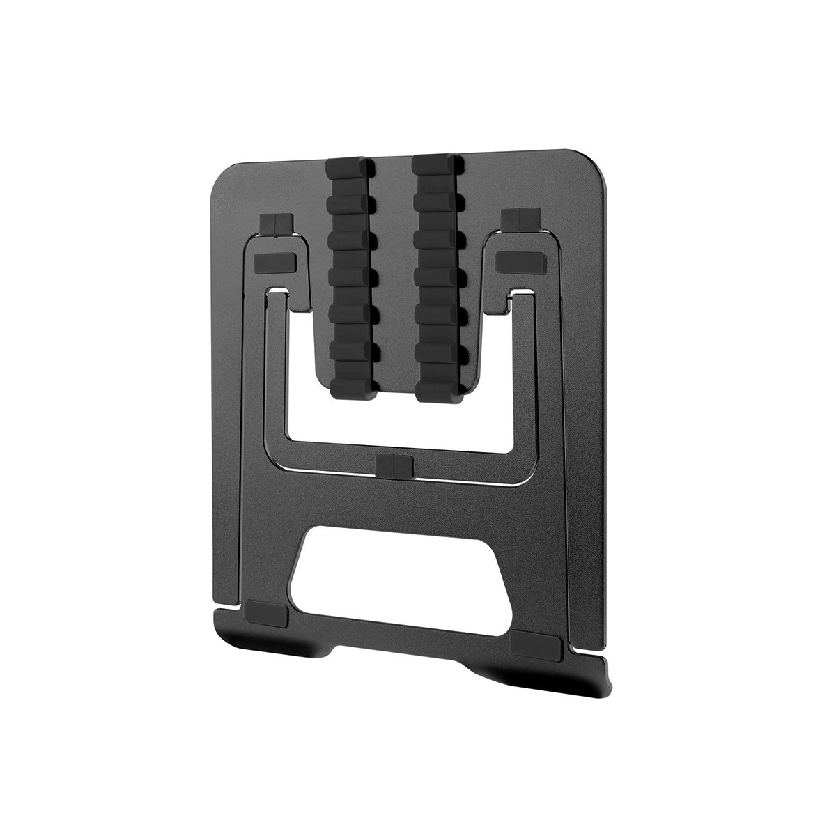 Il design leggero e compatto rende il supporto ideale da portare con te ovunque tu voglia. La configurazione aperta garantisce una buona ventilazione del laptop e i cuscinetti in silicone antiscivolo e il tappo di sicurezza assicurano un posizionamento solido.