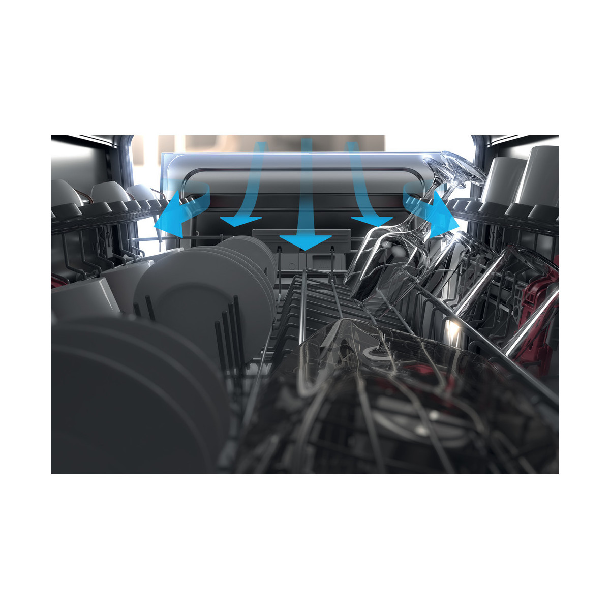 Al termine del ciclo di lavaggio, un algoritmo calcola quando la temperatura all'interno della macchina scende tra i 40°C ed i 50°C per attivare la tecnologia NaturalDry. La porta si apre automaticamente di 10cm per facilitare l'asciugatura delle stoviglie in maniera naturale, preservando il top della cucina.