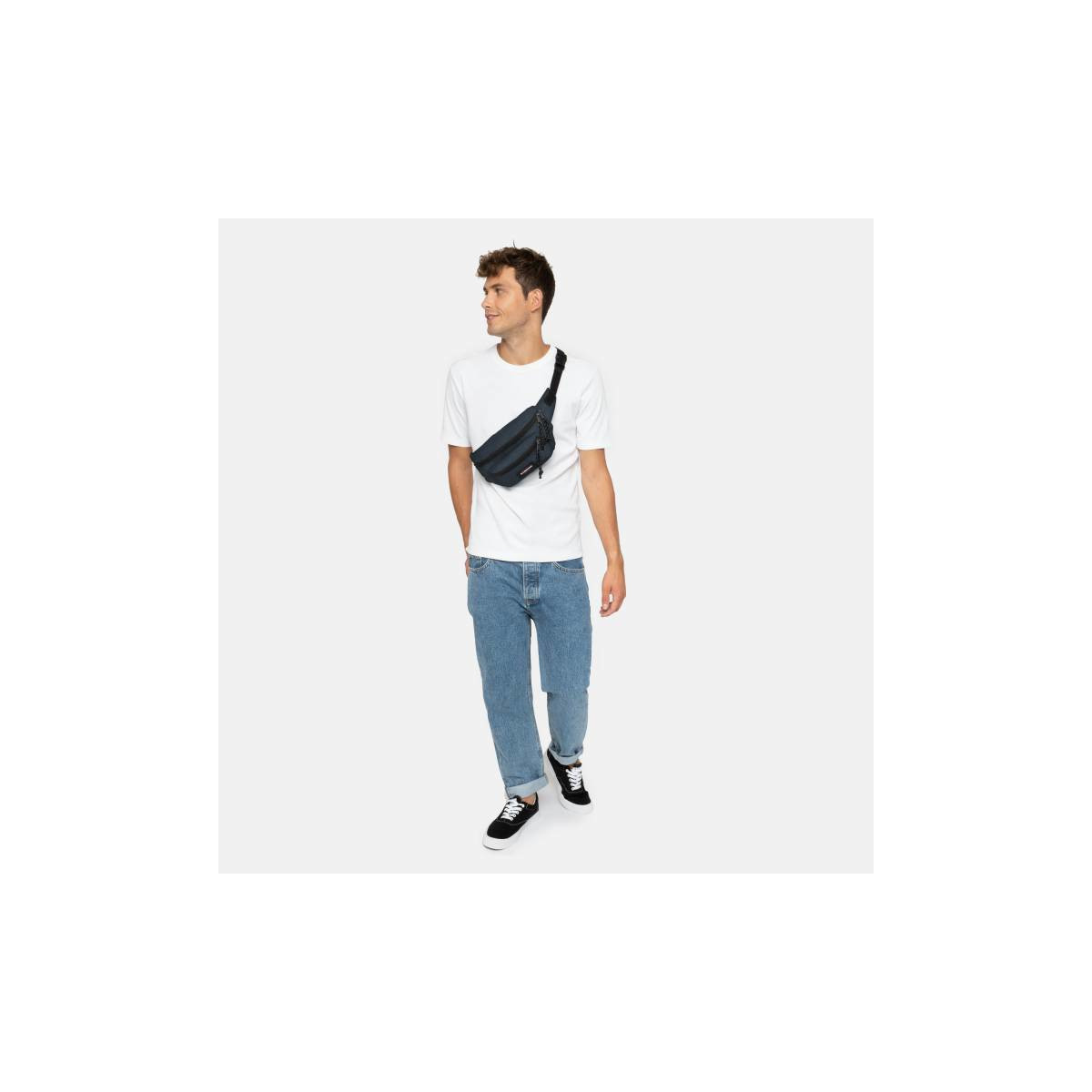 Elegante marsupio nella nostra tonalità Triple Denim, con tasca frontale aggiuntiva per gli oggetti più piccoli