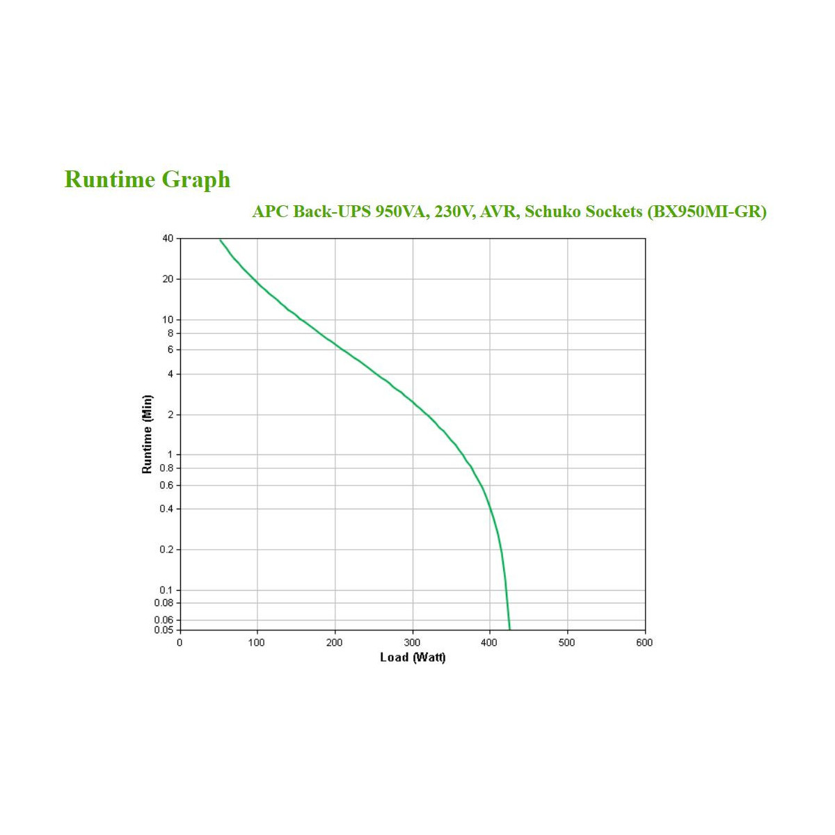 APC BX950MI-GR. Topologia UPS: A linea interattiva, Potenza in uscita: 950 VA, Potenza in uscita: 520 W. Tipo di uscita AC: Tipo F, Presa di corrente: Tipo F, Quantità prese AC: 4 presa(e) AC. Tecnologia batteria: Acido piombo (VRLA), Tempo di salvataggio minimo a pieno carico: 1 min, Tempo di salvataggio minimo a mezzo carico: 6,5 min. Fattore di forma: Compatta, Colore del prodotto: Nero, Lunghezza cavo: 1,2 m. Larghezza: 120 mm, Profondità: 355 mm, Altezza: 160 mm