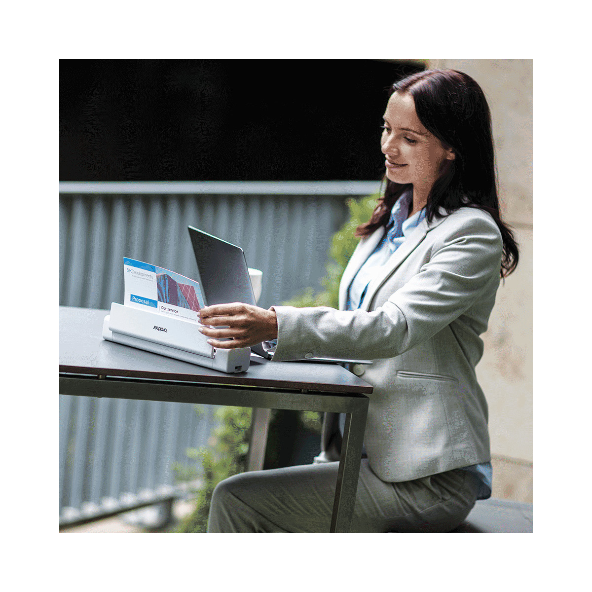 Potente scanner professionale per usi in mobilità, con scansione fronte e retro e autoalimentato tramite USB.