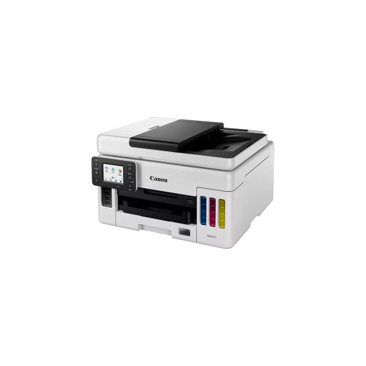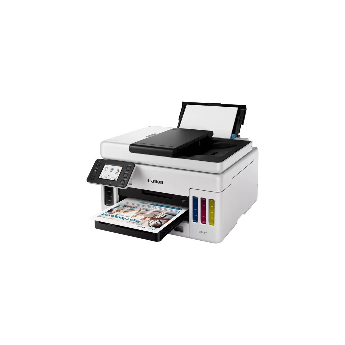 Canon MAXIFY GX6050. Tecnologia di stampa: Ad inchiostro, Stampa: Stampa a colori, Risoluzione massima: 600 x 1200 DPI, Velocità di stampa (colore, qualità normale, A4/US Letter): 15,5 ppm. Copia: Copia a colori. Scansione: Scansione a colori, Risoluzione di scansione ottica: 300 x 300 DPI. Funzione duplex: Stampa. Massimo formato carta serie ISO A: A4. Wi-Fi. Stampa diretta. Colore del prodotto: Nero, Giallo