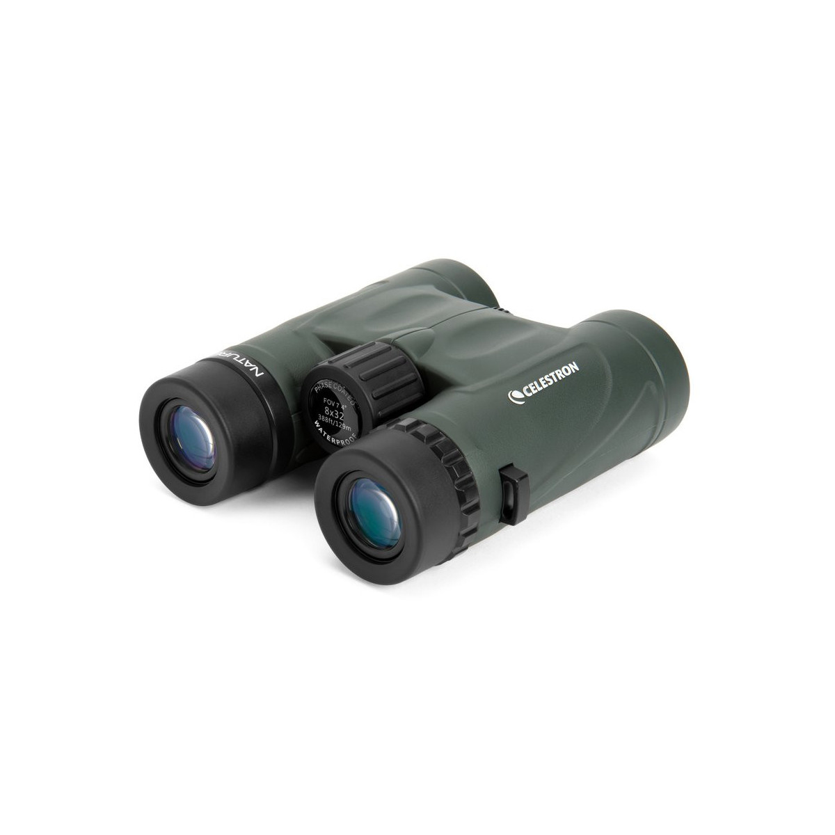 Celestron Nature DX 8x32. Ingrandimento: 8x, Diametro oggettivo: 3,2 cm, Tipo di prisma: BaK-4. Larghezza: 128 mm, Profondità: 126 mm, Altezza: 46 mm