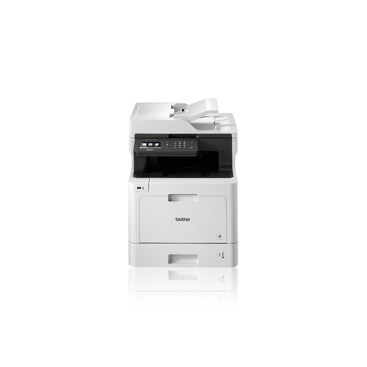 DCP-L8410CDW Multifunzione laser a colori Stampa, scansione e copia a colori in modo più efficiente grazie alle elevate velocità di funzionamento e a un display touchscreen da 9,3 cm estremamente intuitivo. DCP-L8410CDW include una cartuccia di toner nero da 3.000 pagine e cartucce di toner ciano, magenta e giallo con capacità da 1.800 pagine e può utilizzare cartucce opzionali di toner nero da 6.500 pagine e ciano, magenta e giallo da 4.000 pagine per ridurre ulteriormente i costi di gestione. Caratteristiche principali Stampa veloce fino a 31 ppm Capacità massima di carta in ingresso fino a 1.050 fogli Interfaccia di rete cablata ad alta velocità (10Base-T/100Base-TX/1000Base-T) e wireless (IEEE 802.11b/g/n) Cartucce sostitutive opzionali ad altissima capacità (cartucce di toner nero da 6.500 pagine e cartucce di toner ciano, magenta e giallo da 4.000 pagine) Intuitivo display LCD touchscreen a colori da 9.3 cm Massima resa, minimi costi Grazie alla versatilità della gestione della carta, i flussi di lavoro degli utenti vengono semplificati, riducendo così i tempi per il riempimento dei cassetti. I toner opzionali ad altissima capacità 9.000 pagine, permetteno inoltre di abbattere i costi totali di stampa. Sicurezza avanzata Per rispondere alle crescenti esigenze di sicurezza da parte delle aziende, la nuova stampante all in one supporta molteplici soluzioni tra cui secure function lock 3.0, 802.1x, Internet Protocol Security (IPsec) e Active Directory. Flusso di lavoro facilitato L'interfaccia intuitiva e la compatibilità ampia garantiscono l'utilizzo di molteplici servizi professionali cloud, tra cui ad esempio Dropbox e Google Drive. Eco-friendly Tutti i modelli della serie L8000 rispettano i più importanti standard ambientali a livello internazionale, come ad esempio German Blue Angel, Nordic Swan e Energy Star. Pertanto i nostri dispositivi non solo supportano il tuo business in termini di efficienza, ma anche in termini di risparmio energetico e di riduzione dell'impatto ambientale e allo stesso tempo di minimizzazione dei costi di gestione.
