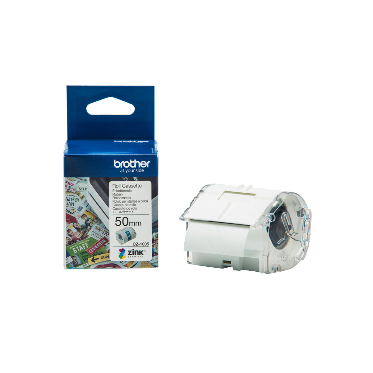 Brother CZ-1005. Colore etichetta: Bianco su verde, Tipo nastro: CZ, Tecnologia di stampa: Ad inchiostro. Ampiezza nastro: 5 cm, Lunghezza nastro: 5 m, Tipo di imballo: Scatola