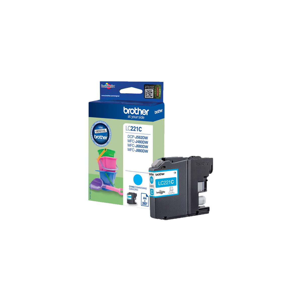Brother LC-221C. Tipo: Originale, Colori di stampa: Ciano, Compatibilità: Brother DCP-J562DW, MFC-J480DW, MFC-J680DW, MFC-J880DW. Produzione pagine note a piè di pagina: ISO/IEC 24711, Dimensioni carta: A4