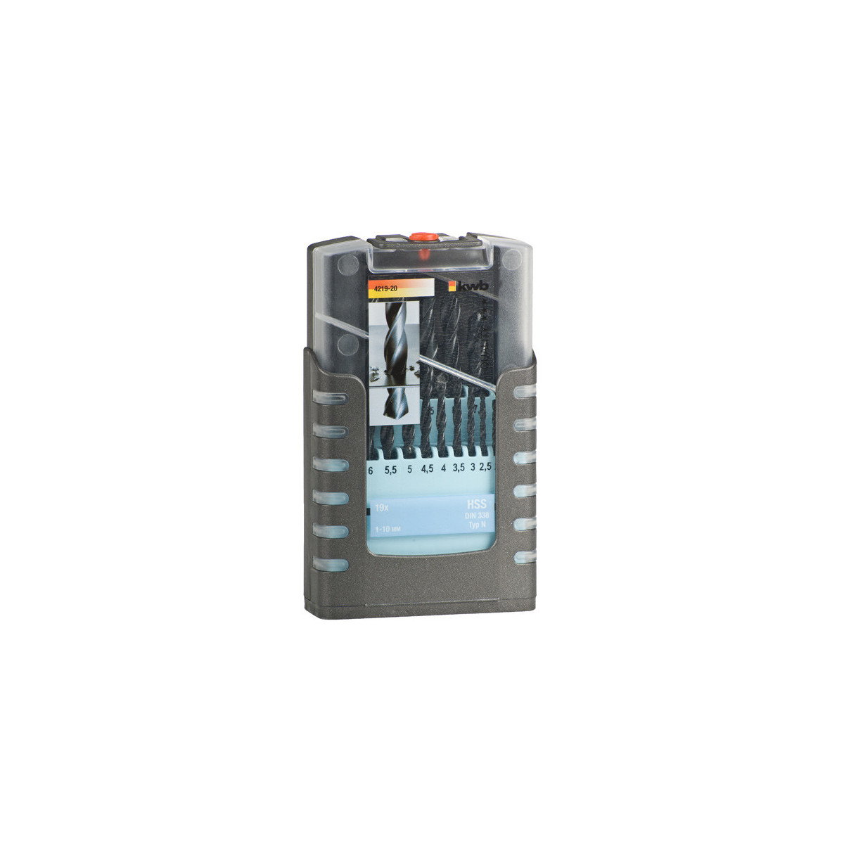 kwb 421920. Uso appropriato: Trapano, Tipo di punta per trapano: Punta per trapano elicoidale, direzione di rotazione: Rotazione manuale destra. Tipo di imballo: Scatola da appendere. Numero di punte per trapano: 19 pezzo(i)