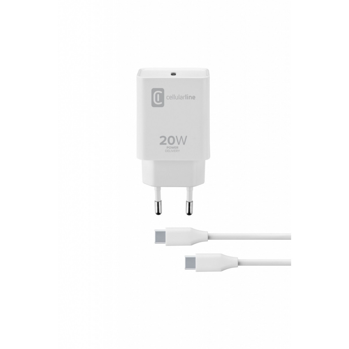 Cellularline USB-C Charger Kit 20W - USB-C to USB-C - iPad Pro (2018 or later) and iPad Air (2020) Caricabatterie da rete USB-C 20W per la carica alla massima velocità di iPad Pro (2018 e successivi) e iPad Air (2020) con cavo USB-C to USB-C Bianco. Tipo di caricatore: Interno, Tipologia alimentazione: AC, Compatibilità caricatore: Universale. Voltaggio di ingresso: 110 - 240 V. Quantità di porte USB Tipo C: 1. Lunghezza cavo: 1 m, Colore del prodotto: Bianco