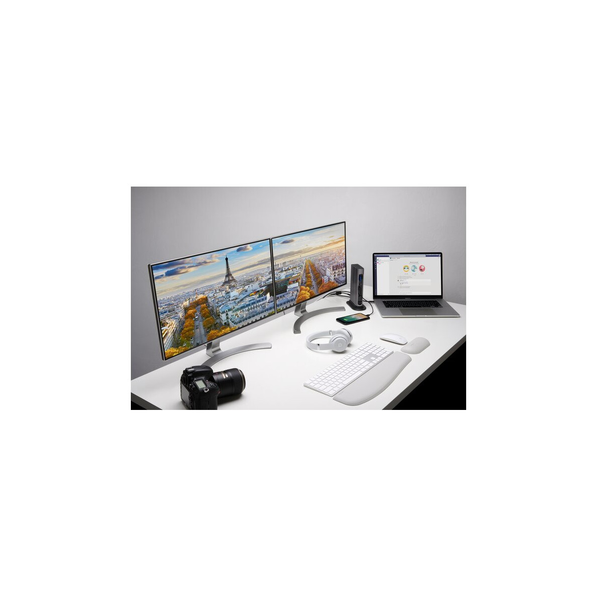 La docking station ibrida SD5600T Thunderbolt™ 3 e USB-C 4K doppio - 100 W PD – Win/Mac è la docking station ideale per produttività e compatibilità massime. Tra le caratteristiche si trovano compatibilità universale, la flessibilità di scelta tra HDMI 2.0 e DP 1.2, opzioni di posizionamento orizzontale o verticale, lettori di schede SD e Micro SD integrati, sette porte USB (due con ricarica), una porta Ethernet Gigabit e un jack audio combinato. Garanzia di tre anni.