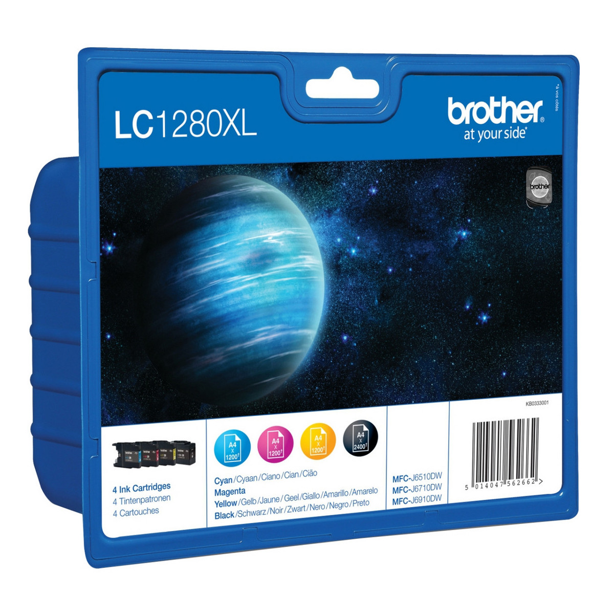 Brother LC-1280XLVALBPDR. Tipo: Originale, Tipo di inchiostro: Inchiostro a base di pigmento, Colori di stampa: Nero, Ciano, Magenta, Giallo. Tipo di imballo: Blister