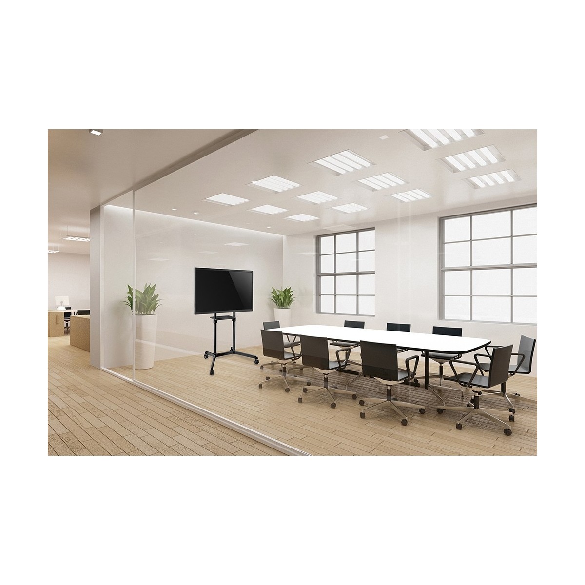 Il supporto a pavimento NewStar, modello NS-M1250BLACK è un mobiletto portatile per schermi LCD/LED/Plasma fino a 70" (178 cm).