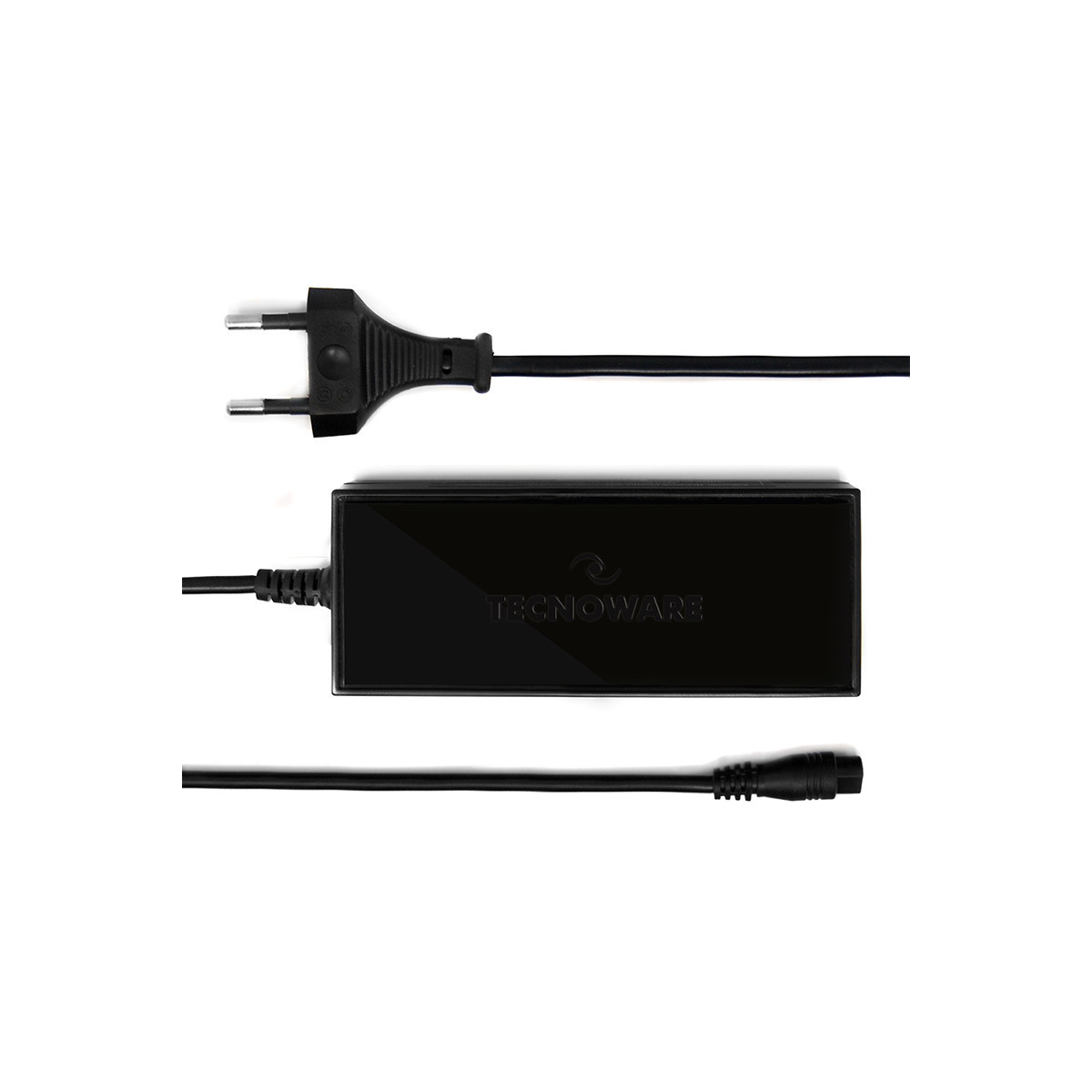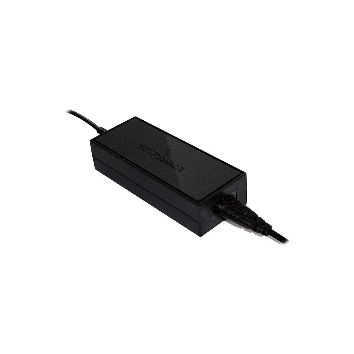 Alimentatore Universale AUTOMATICO 95W TOGETHERON per casa/ufficio 230Vac 50/60Hz colore nero, compatibile con le principali marche e modelli di notebook, ultrabook, tablet; set di 10 connettori modulari incluso (Ulteriori connettori disponibili su www.tecnoware.com) , tensione d'uscita a selezione automatica in base al connettore utilizzato, protezione da sovraccarico e cortocircuito, controllo temperatura interna, lunghezza cavo d’ingresso 100 cm, lunghezza cavo d'uscita 150 cm, dimensioni 11,2X4,4X2,7 cm