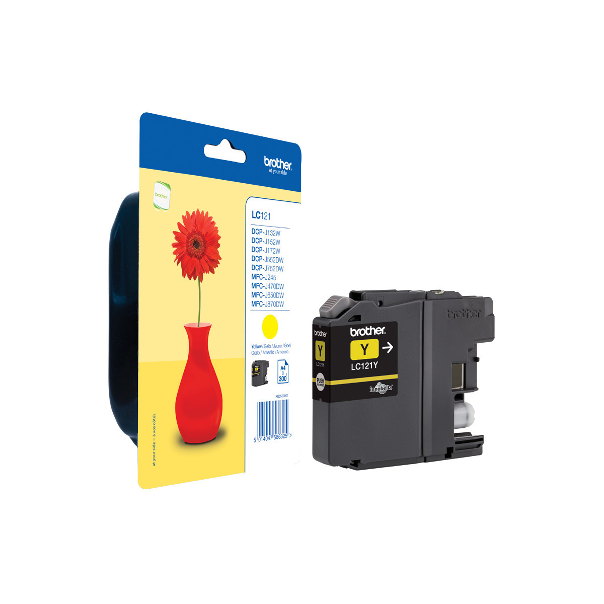 Brother LC-121Y. Tipo: Originale, Tipo di inchiostro: Inchiostro a base di pigmento, Colori di stampa: Giallo. Tipo di imballo: Blister