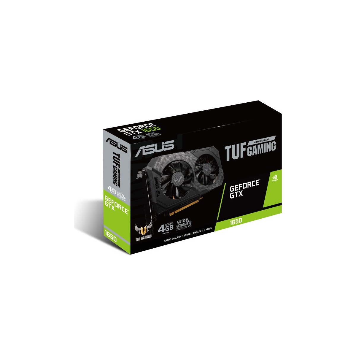 ASUS TUF Gaming TUF-GTX1650-4GD6-P-GAMING. Processore grafico / fornitore: NVIDIA, Processore grafico: GeForce GTX 1650, Frequenza del processore: 1410 MHz. Memoria Grafica Dedicata: 4 GB, Tipo memoria adattatore grafico: GDDR6, Ampiezza dati: 128 bit. Risoluzione massima: 7680 x 4320 Pixel. Versione OpenGL: 4.6. Tipo interfaccia: PCI Express x16 3.0. Tipo di raffreddamento: Attivo, Numero di ventole: 2 ventola(e)