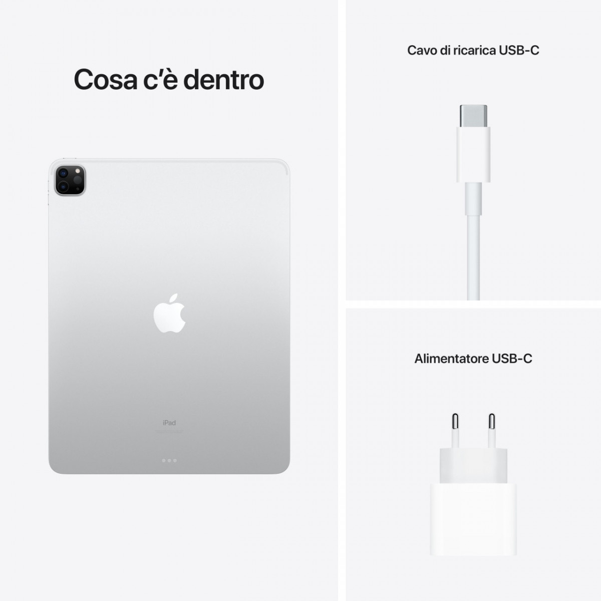 Apple iPad Pro 12.9" con Chip M1 (quinta gen.) Wi-Fi 256GB - Argento. Dimensioni schermo: 32,8 cm (12.9"), Risoluzione del display: 2732 x 2048 Pixel, Tecnologia display: Mini LED. Capacità memoria interna: 256 GB. Famiglia processore: Apple M, Modello del processore: M1. RAM installata: 8 GB. Risoluzione fotocamera posteriore (numerico): 12 MP, Tipo di fotocamera posteriore: Doppia fotocamera, Risoluzione fotocamera frontale (numerico): 12 MP, Fotocamera frontale. Wi-Fi standard: Wi-Fi 6 (802.11ax). Peso: 682 g. Sistema operativo incluso: iPadOS 14. Colore del prodotto: Argento