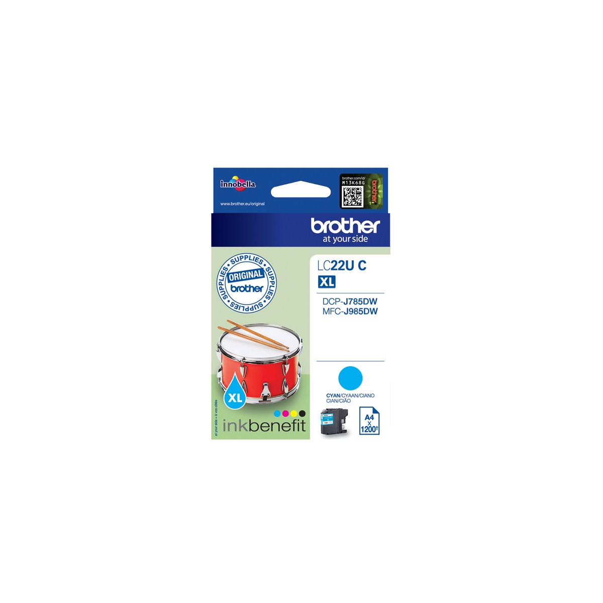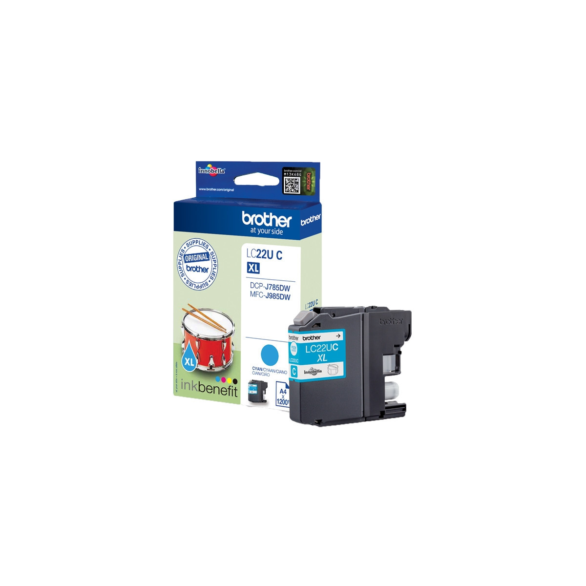 Brother LC-22UC. Tipo: Originale, Colori di stampa: Ciano, Compatibilità marca: Brother. Tipo di imballo: Scatola