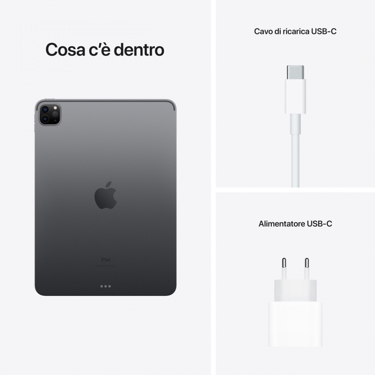 Apple iPad Pro 11" con Chip M1 (terza gen.) Wi-Fi 2TB - Grigio siderale. Dimensioni schermo: 27,9 cm (11"), Risoluzione del display: 2388 x 1668 Pixel, Tecnologia display: LED. Capacità memoria interna: 2048 GB. Famiglia processore: Apple M, Modello del processore: M1. RAM installata: 16 GB. Risoluzione fotocamera posteriore (numerico): 12 MP, Tipo di fotocamera posteriore: Doppia fotocamera, Risoluzione fotocamera frontale (numerico): 12 MP, Fotocamera frontale. Wi-Fi standard: Wi-Fi 6 (802.11ax). Peso: 466 g. Sistema operativo incluso: iPadOS 14. Colore del prodotto: Grigio