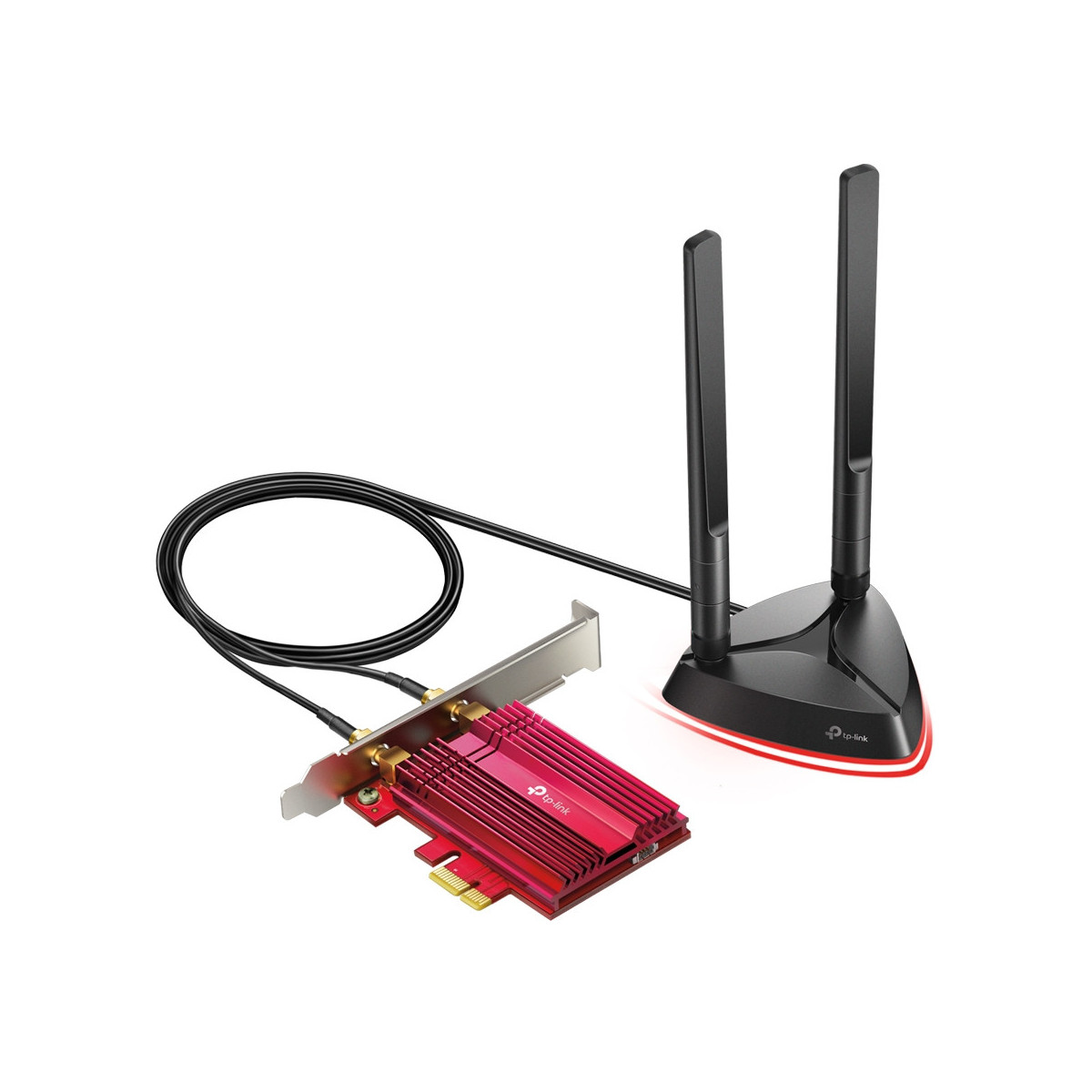 TP-LINK Archer TX3000E. Interno. Tecnologia di connessione: Senza fili, Interfaccia host: PCI Express, Interfaccia: WLAN / Bluetooth. Velocità massima di trasferimento dati: 2402 Mbit/s, Wi-Fi standard: Wi-Fi 6 (802.11ax), Banda Wi-Fi: Dual-band (2.4 GHz/5 GHz). Colore del prodotto: Nero, Rosso
