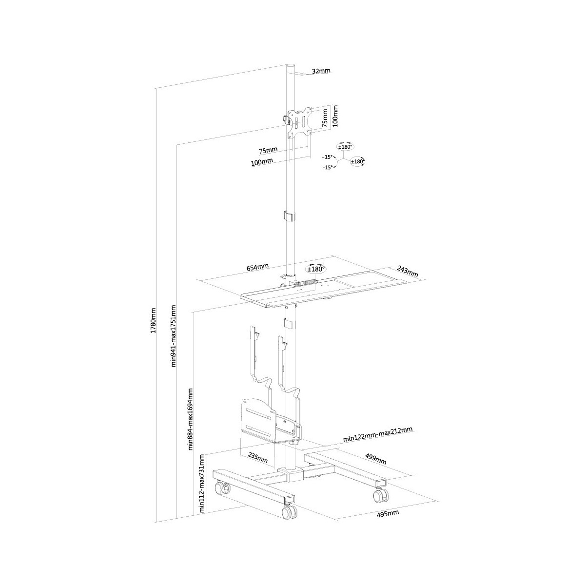 Utilizzate una postazione di lavoro mobile per sfruttare pienamente le capacità del vostro hardware. Imposta il tuo schermo, tastiera e mouse nel modo giusto per avere questa postazione di lavoro in qualsiasi posizione desiderata. Lo schermo è facile da inclinare e ruotare.