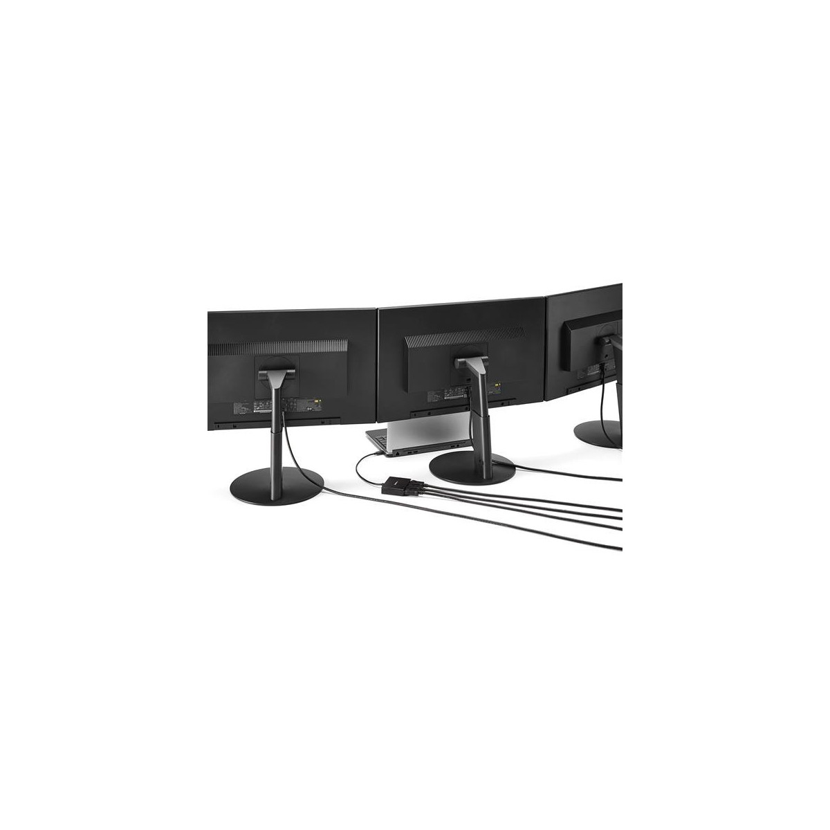 La compatibilità con le porte Thunderbolt 3 consente all'hub MST di eseguire la conversione da Thunderbolt 3 a tre uscite DisplayPort sfruttando questa tecnologia innovativa. A un prezzo inferiore rispetto a quello delle dock, MST costituisce una soluzione multi-monitor più conveniente rispetto a una tradizionale docking station per computer laptop tradizionale.