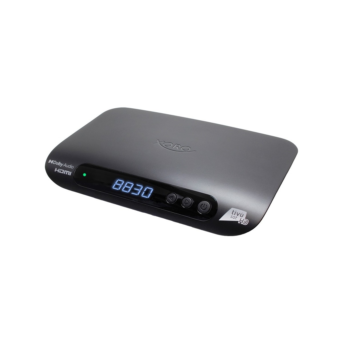 Xoro HRS 8830. Fonte segnale: Ethernet (RJ-45), Satellite, Tipologia HD: Full HD, Risoluzioni video: 1920 x 1080 Pixel. Formati video supportati: AVI,H.264,HEVC,MKV,MP4,MPEG,MPEG2,MPEG4, Formati audio supportati: MP3, Formati immagini supportati: BMP,JPEG. Colore del prodotto: Nero. Tipologia display: LED. Consumi: 12 W, Tensione di ingresso AC: 100 - 240 V, Consumi (modalità stand-by): 0,6 W