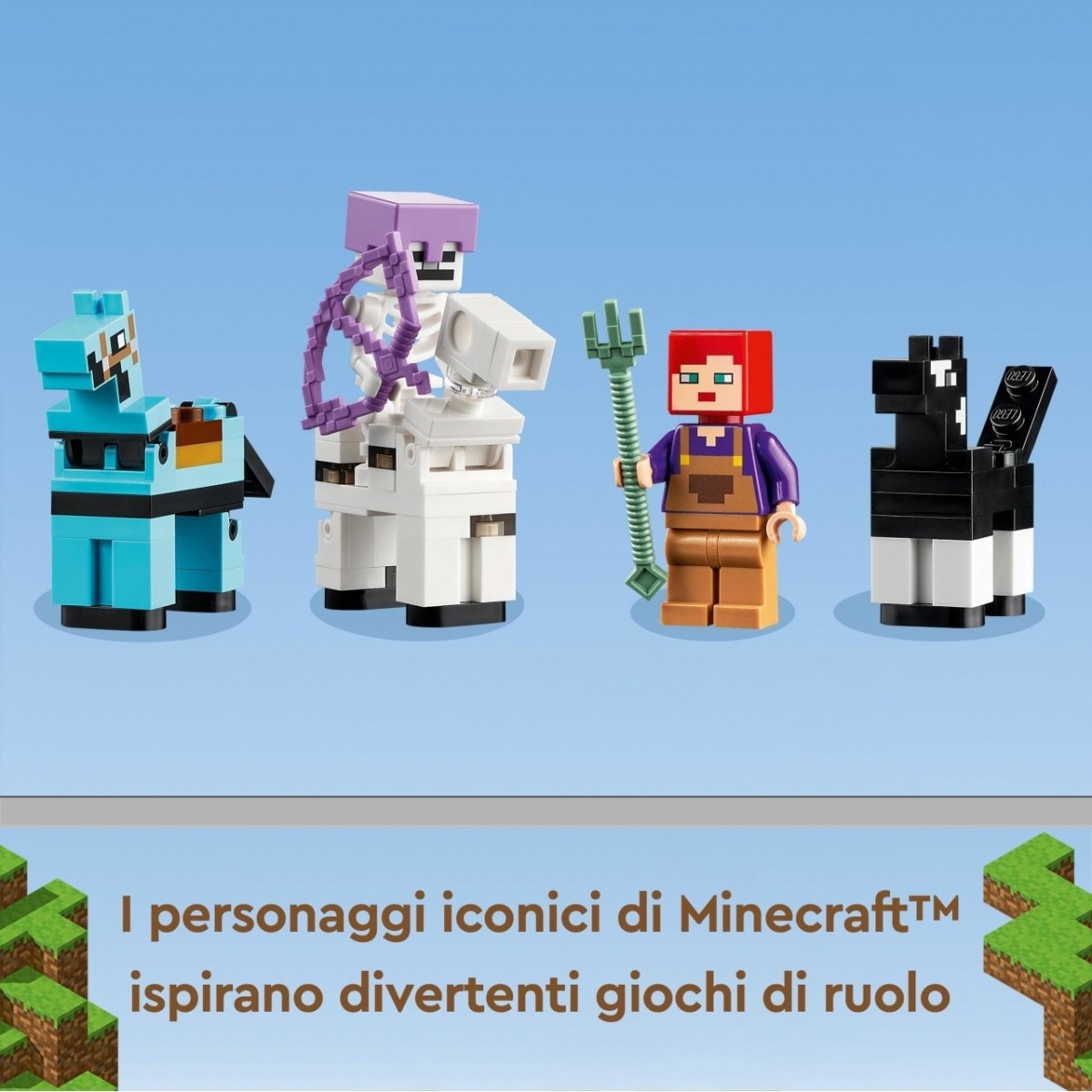 I bambini che amano creare e lasciare libera la propria immaginazione adoreranno questo versatile set LEGO con giocattoli e personaggi Minecraft. Il gioco creativo con questo playset comincia non appena si apre la scatola! La scuderia è dotata di porte apribili ed è ricca di dettagli Minecraft autentici, come la carota d’oro e l’armatura di diamante. Bisogna nutrire e prendersi cura dei cavalli, progettare un percorso a ostacoli e combattere contro lo scheletro a cavallo! Questo pratico set riconfigurabile, da costruire e con cui giocare, è un regalo ideale per tutti i bambini che amano i cavalli e adorano giocare a Minecraft.