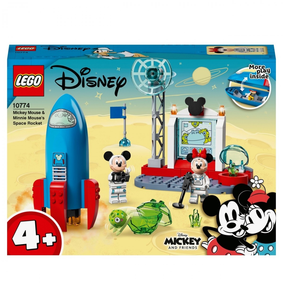 Metti in moto l'immaginazione dei più piccoli con LEGO Disney Mickey and Friends Il Razzo Spaziale di Topolino e Minnie (10774). Questo giocattolo costruibile per bambini di 4 anni contiene una stazione e un razzo spaziale e lascia liberi i bambini di scoprire lo spazio in compagnia di Topolino e Minnie.