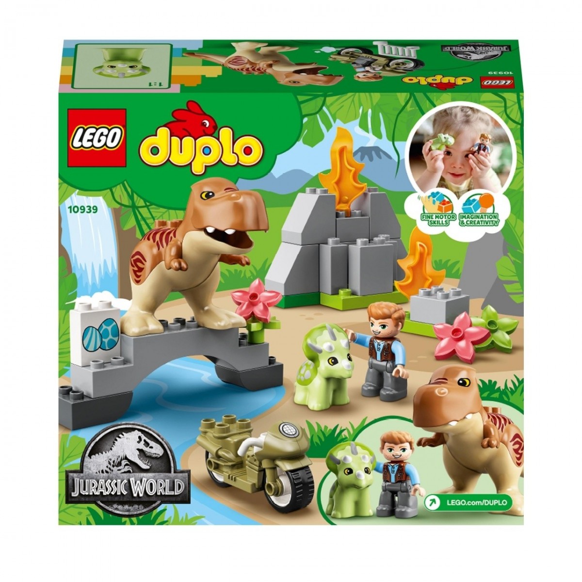 LEGO DUPLO Fuga del T.rex e del Triceratopo - 10939. Tipo di prodotto: Set da costruzione, Genere consigliato: Ragazzo/Ragazza, Età consigliata (min): 2 anno/i, Materiali: ABS, Plastica riciclata, Numero di pezzi: 36 pezzo(i). Peso dell'imballo: 580 g