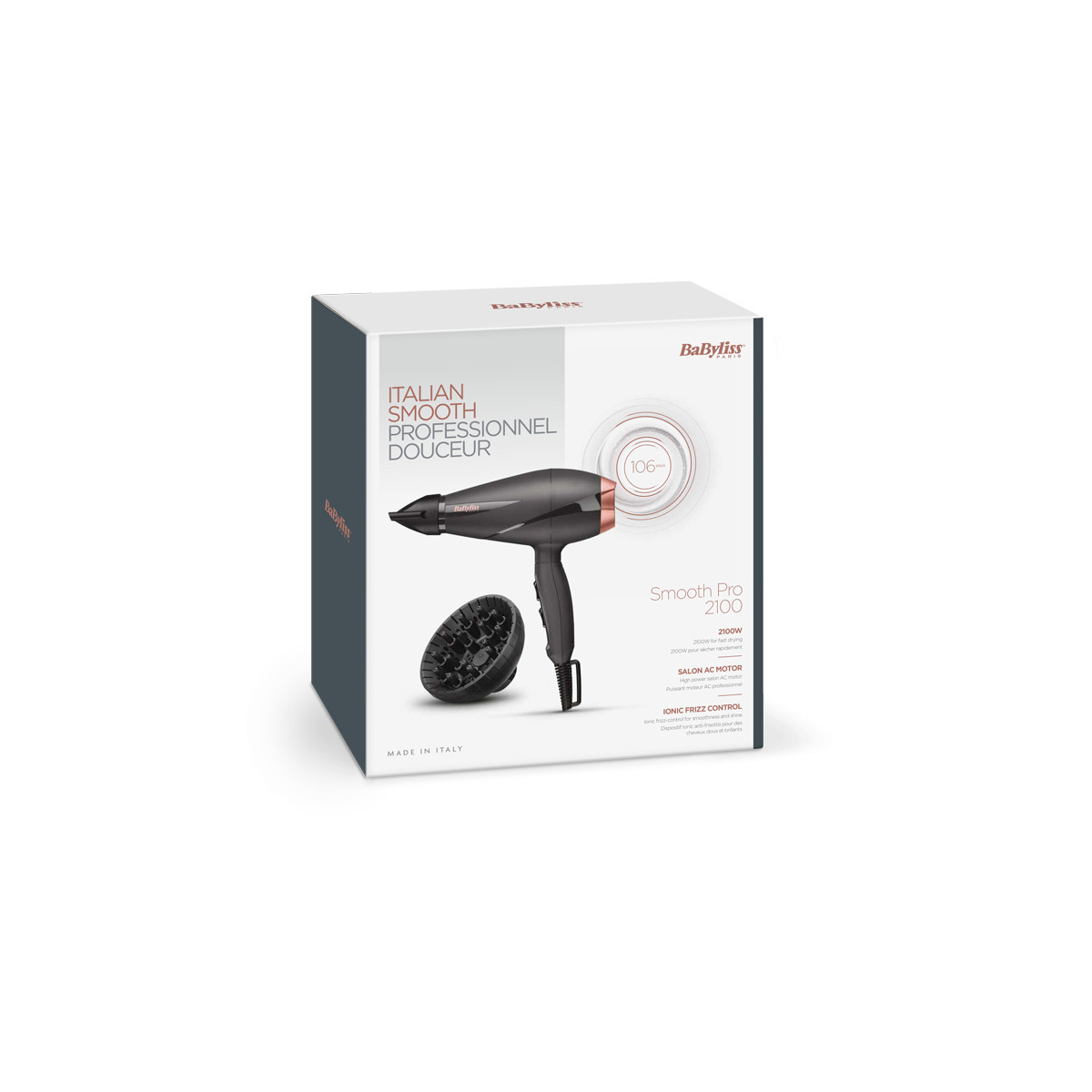BaByliss 6709DE Smooth PRO 2100 - Asciugacapelli Professionale, 2 Velocità, 2 Temperature, Concentratore Ultrasottile,