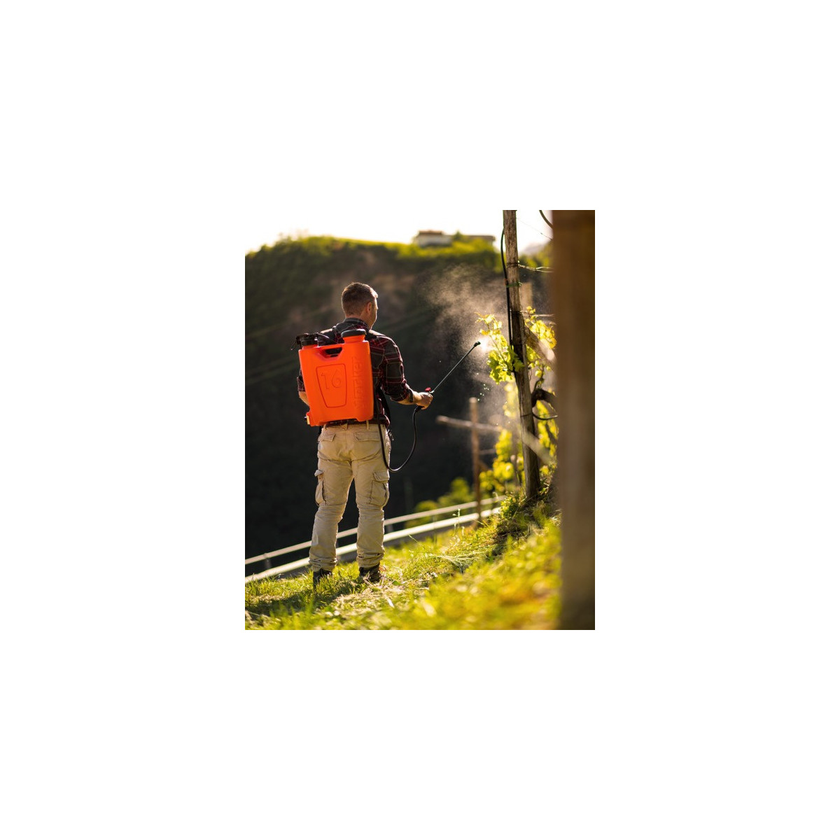 Pompa a zaino professionale completa di tubo flessibile, lancia in fibra di vetro e lancia in alluminio, mentre il serbatoio è in plastica robusto ed ergonomico. Dotata di filtro e tappo agganciato.