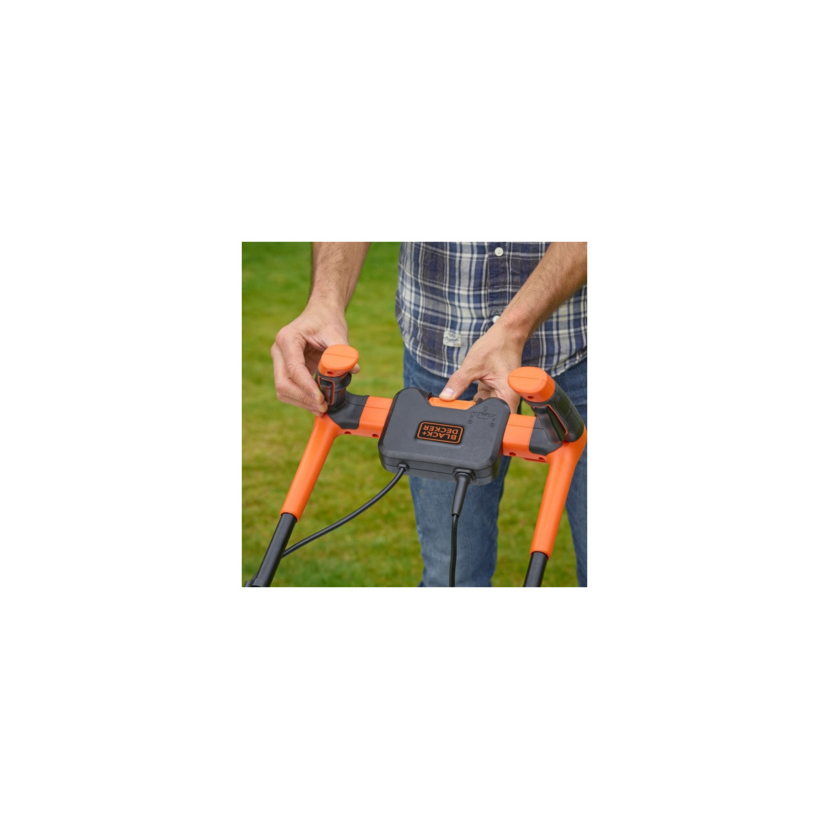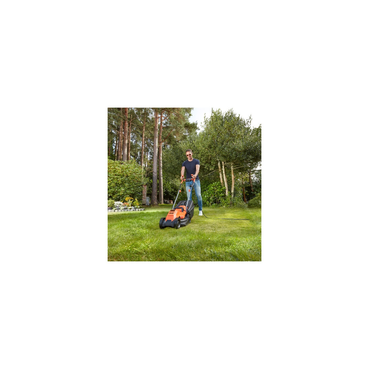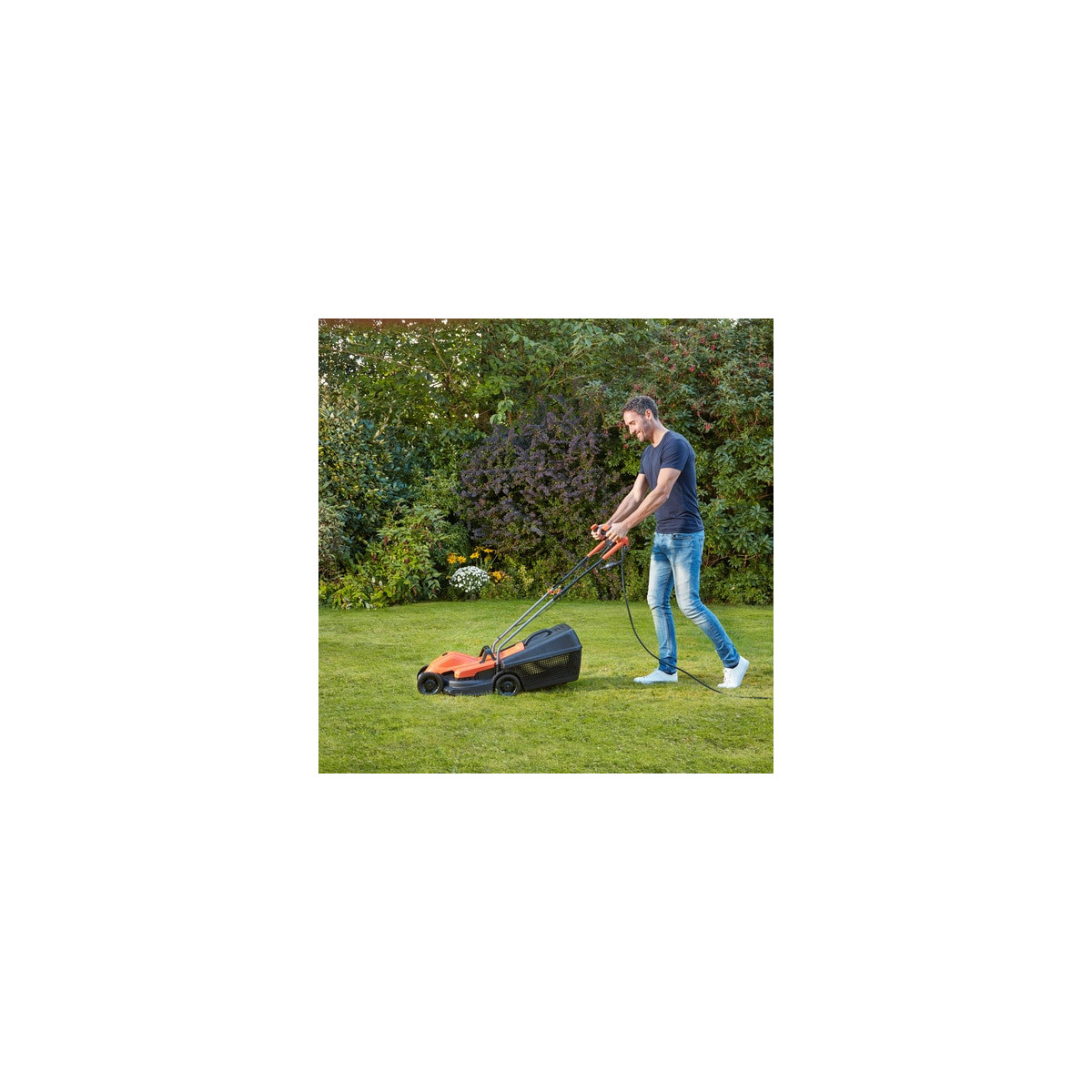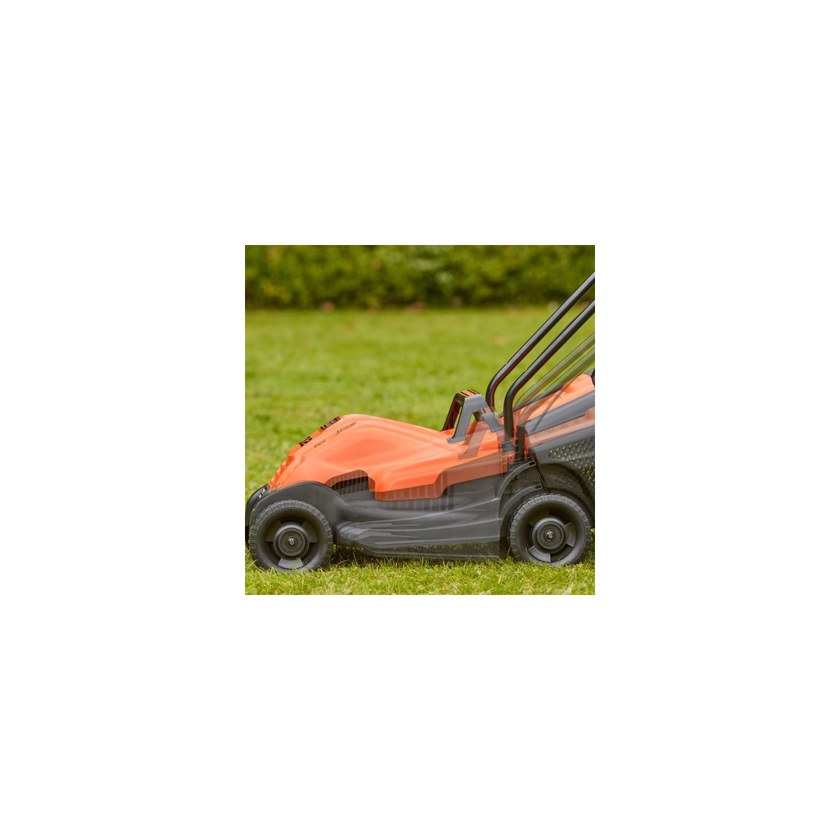 Rasaerba 1200W con 32cm di taglio, ideale per giardini di piccole dimensioni, con nuova impugnatura Bike che permette un'ottima manovrabilità. Il nuovo design delle lame garantisce l'80% in più di capacità di raccolta rispetto alla gamma precedente