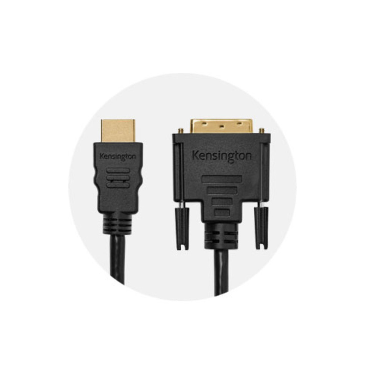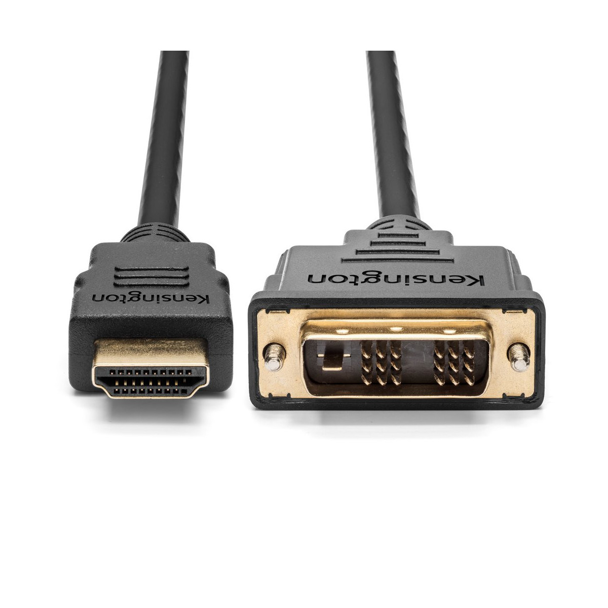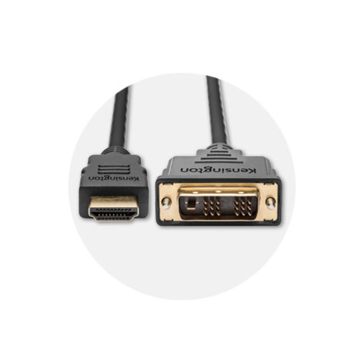 Un cavo essenziale per il collegamento di laptop e PC desktop con HDMI o DVI a monitor con un altro tipo di attacco, il cavo passivo Kensington da HDMI (M) a DVI-D (M) offre connettività affidabile per monitor e console multimediali, compresi lettori di Blu-ray, Apple TV, Roku, Play Station 3/4, Xbox One/360 o Nintendo Wii. Questo cavo di qualità è stato testato per l'utilizzo con docking station Kensington ed è supportato da una garanzia limitata a vita Kensington. La realizzazione del cavo di qualità comprende schermatura interna ed esterna per ridurre al minimo possibili interferenze radio (RFI) ed elettromagnetiche (EMI), connettori placcati in oro e viti ad alette per fornire prestazioni continue del cavo.