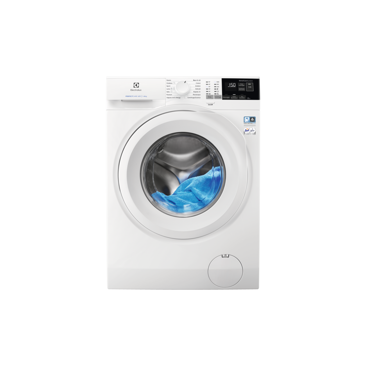 - Opzioni: Prelavaggio, Extra Risciacquo, StiroFacile