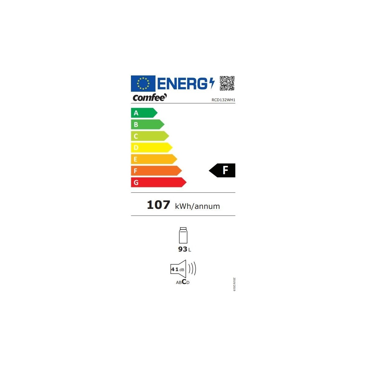 Comfeè RCD132WH1 - Frigorifero Monoporta Freestanding, 93 Litri, Classe F
