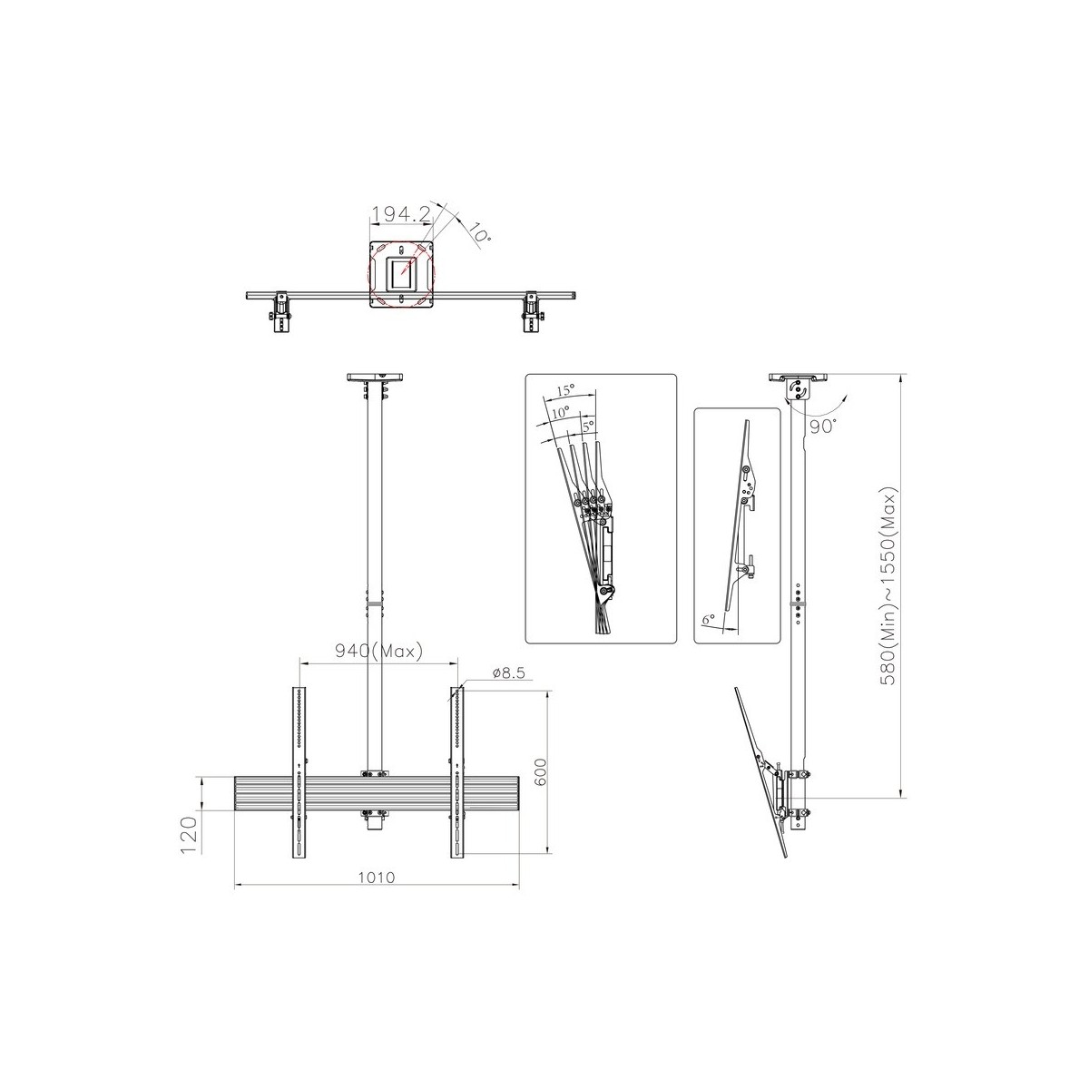 Multibrackets 5778. Peso massimo (capacità): 90 kg, Capienza minima dimensioni dello schermo: 101,6 cm (40"), Capienza massima dimensioni dello schermo: 190,5 cm (75"), Compatibilità interfaccia di montaggio (min): 100 x 100 mm, Compatibilità interfaccia di montaggio (max): 900 x 600 mm. Range di regolazione altezza: 580 - 1550 mm, Inclinazione: -6 - 15°, Angolo di rotazione: 90°. Colore del prodotto: Nero