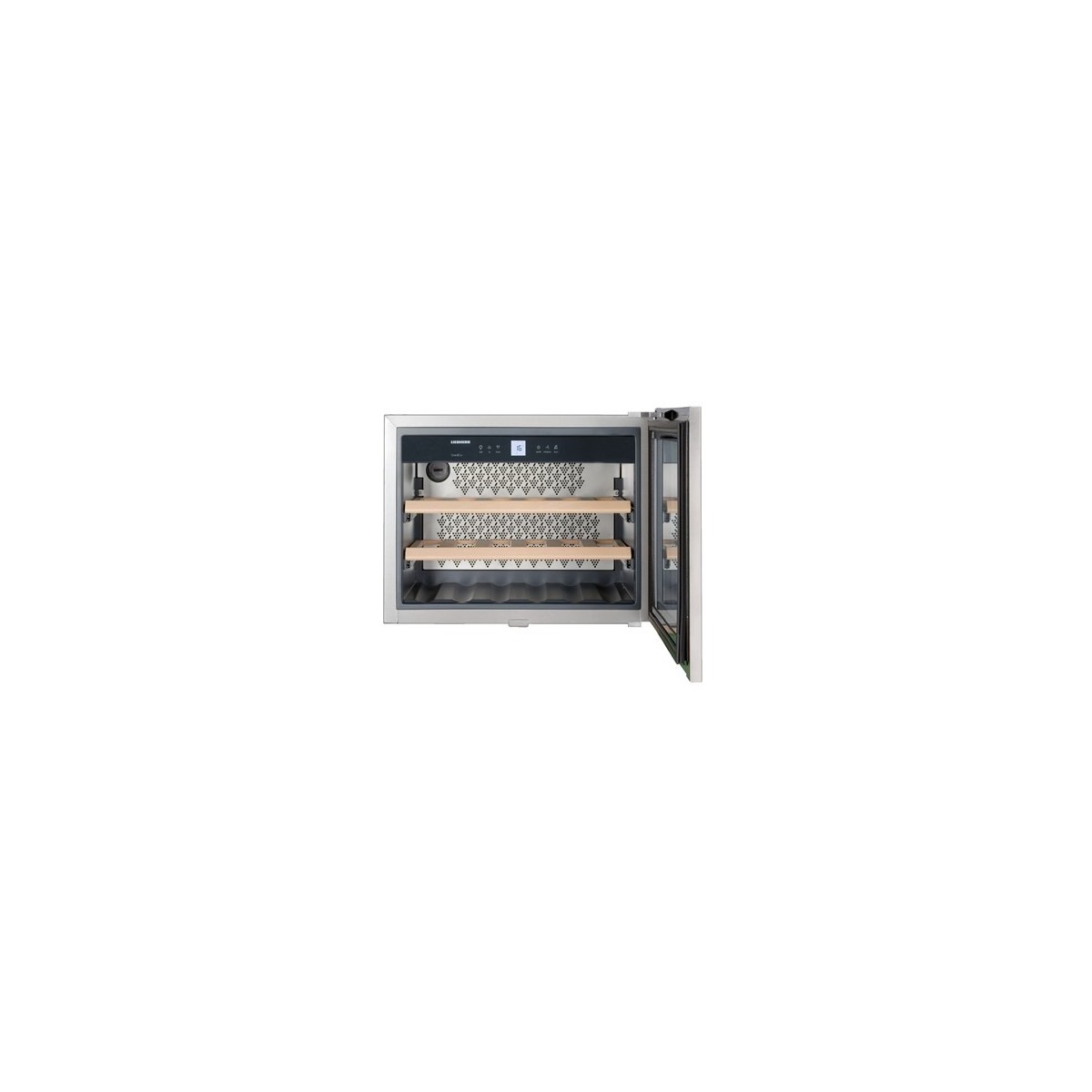 Liebherr WKEes 553-21. Posizionamento dell'apparecchio: Da incasso, Numero di ripiani: 3 ripiani, Colore del prodotto: Argento. Capacità bottiglie: 18 bottiglia/bottiglie, Tipo di prodotto: Cantinetta per vino, Classe climatica: SN. Classe efficienza energetica: G, Consumo energetico annuo: 140 kWh, Scala di efficienza energetica: Da A a G. Tipo di display: LCD. Larghezza: 557 mm, Profondità: 522 mm, Altezza: 441 mm