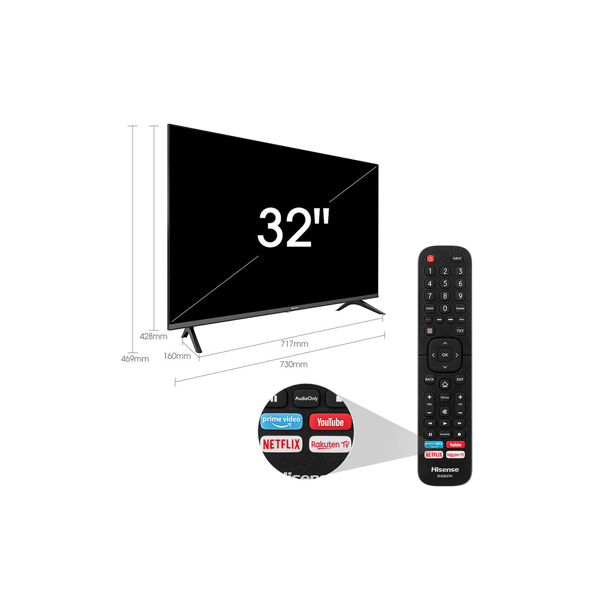 Hisense A5700FA. Dimensioni schermo: 81,3 cm (32"), Risoluzione del display: 1366 x 768 Pixel, Tipologia HD: HD, Tecnologia display: LED, Forma dello schermo: Piatto, Tipo di retroilluminazione LED: Direct-LED. Smart TV. Tecnologia di interpolazione del movimento: PCI (Picture Criteria Index) 600, Rapporto d'aspetto nativo: 16:9. Formato del segnale digitale: DVB-C,DVB-S,DVB-S2,DVB-T,DVB-T2. Wi-Fi, Collegamento ethernet LAN. Colore del prodotto: Nero