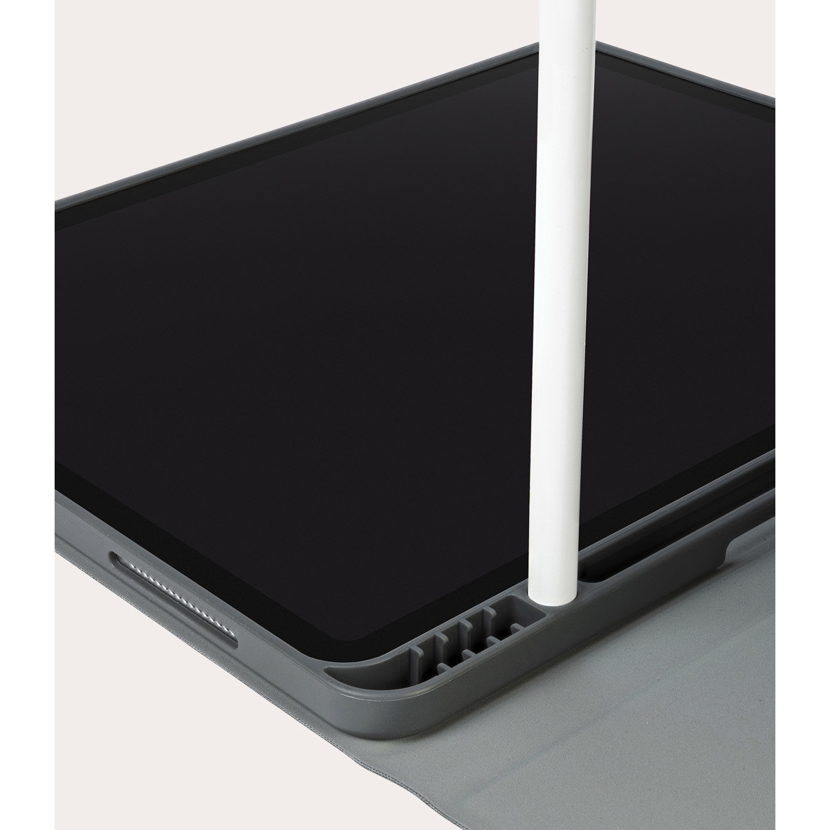 Custodia per iPad Pro 12.9" (2021) con scocca posteriore flessibile in TPU e copertina in finitura satinata, facilmente trasformabile in stand up per una comoda navigazione. La custodia Link è dotata di un vano interno per riporre l'Apple Pencil e di un alloggio esterno per la sua ricarica. Foro per la fotocamera sul retro.
