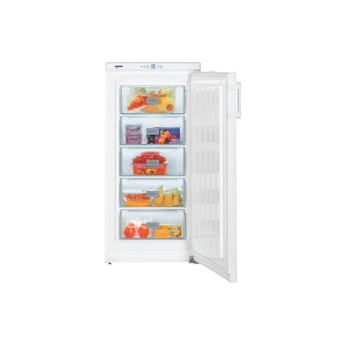 Liebherr GP2033-21. Tipo: Verticale. Capacità netta congelatore: 158 L, Classe climatica: SN-T, Capacità di congelamento: 19 kg/24h, Autonomia senza energia elettrica: 24 h, Emissione acustica: 39 dB, Punteggio: 4*. Classe efficienza energetica: F, Consumo energetico annuo: 235 kWh. Colore del prodotto: Bianco